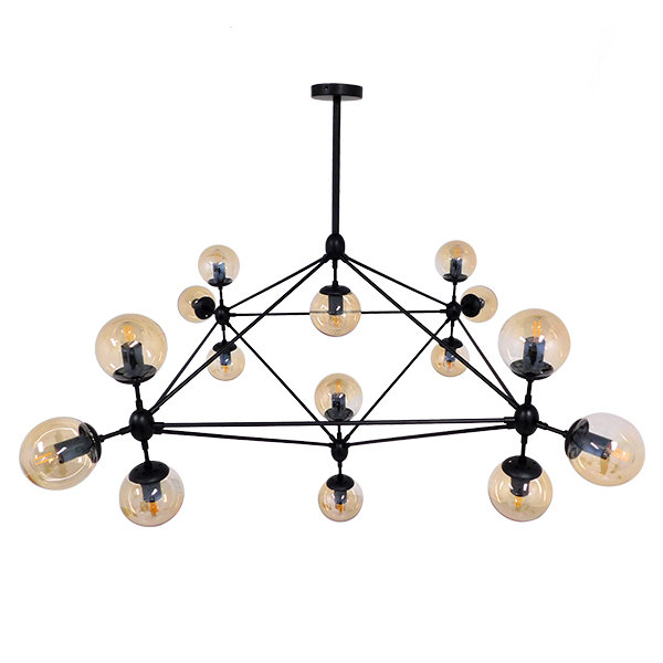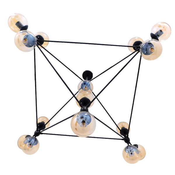 GLOBOSTAR® SENTINEL 01637 Μοντέρνο Φωτιστικό Οροφής με Ντουί 15 x E27 AC 220-240V IP20 - Μαύρο & Μελί - Μ150 x Π150 x Υ115cm
