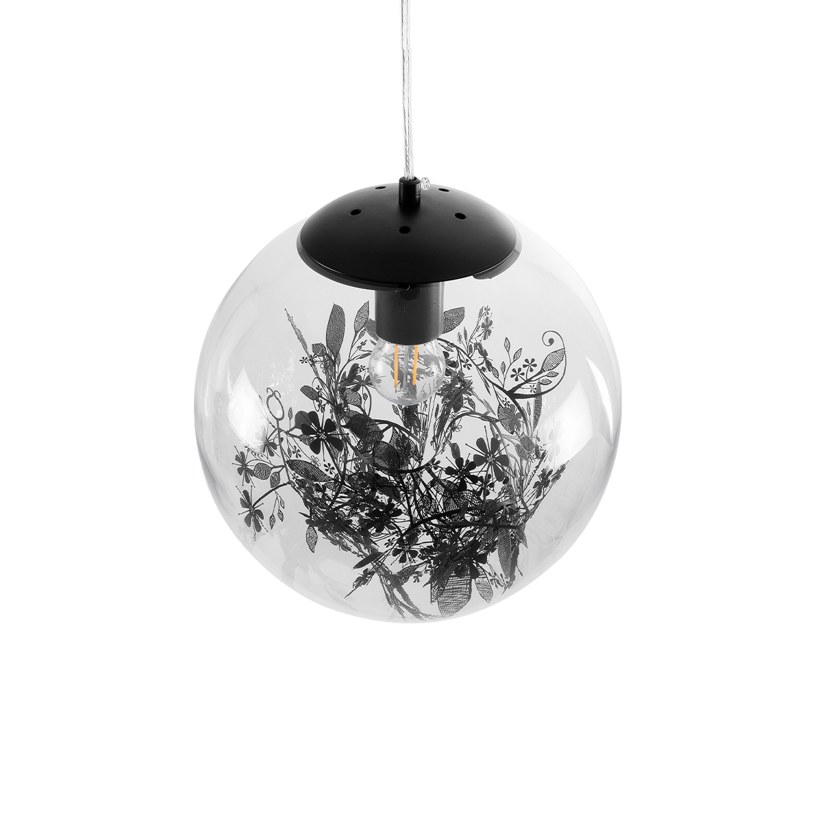 GLOBOSTAR® HARPER 01512 Μοντέρνο Κρεμαστό Φωτιστικό Οροφής με Ντουί 1 x E27 AC 220-240V IP20 - Διάφανο & Μαύρο - Μ25 x Π25 x Υ30cm