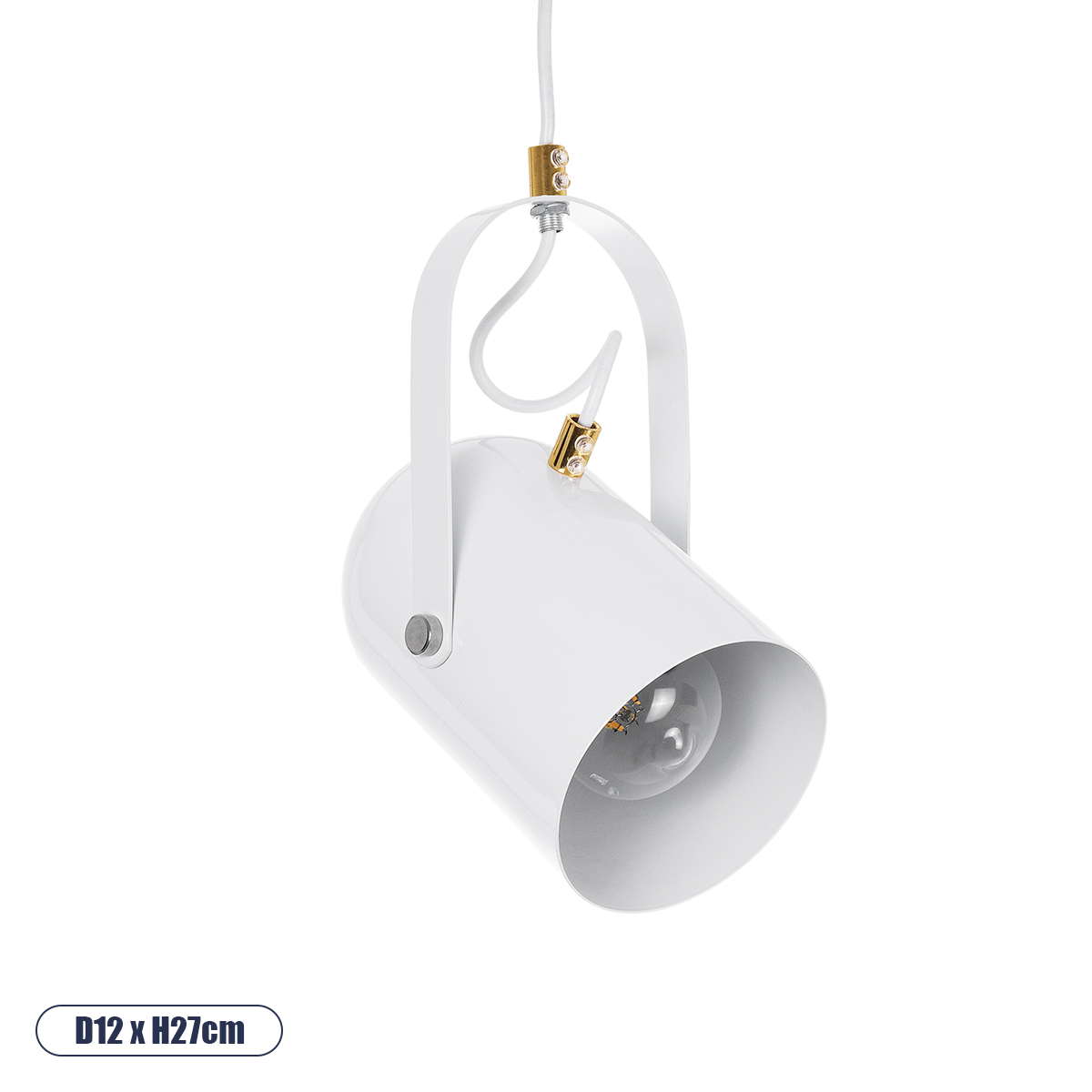 GLOBOSTAR® HAZEL 00924 Μοντέρνο Κρεμαστό Φωτιστικό Οροφής με Ντουί 1 x E27 AC 220-240V IP20 - Λευκό & Χρυσό - Μ12 x Π12 x Υ27cm