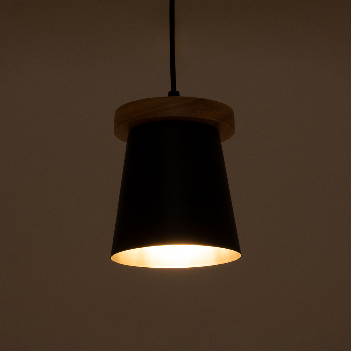 GLOBOSTAR® LANA 01424 Μοντέρνο Κρεμαστό Φωτιστικό Οροφής με Ντουί 1 x E27 AC 220-240V IP20 - Μαύρο & Καφέ - Μ13 x Π13 x Y17cm