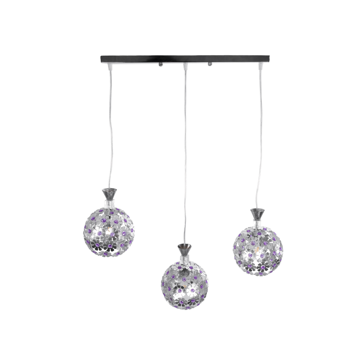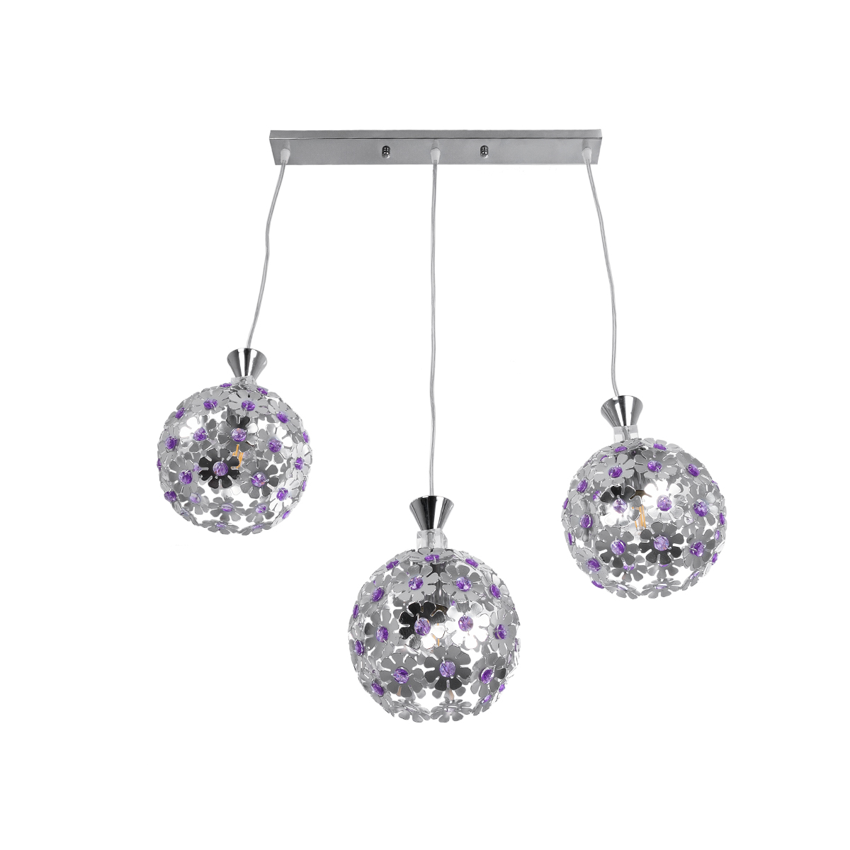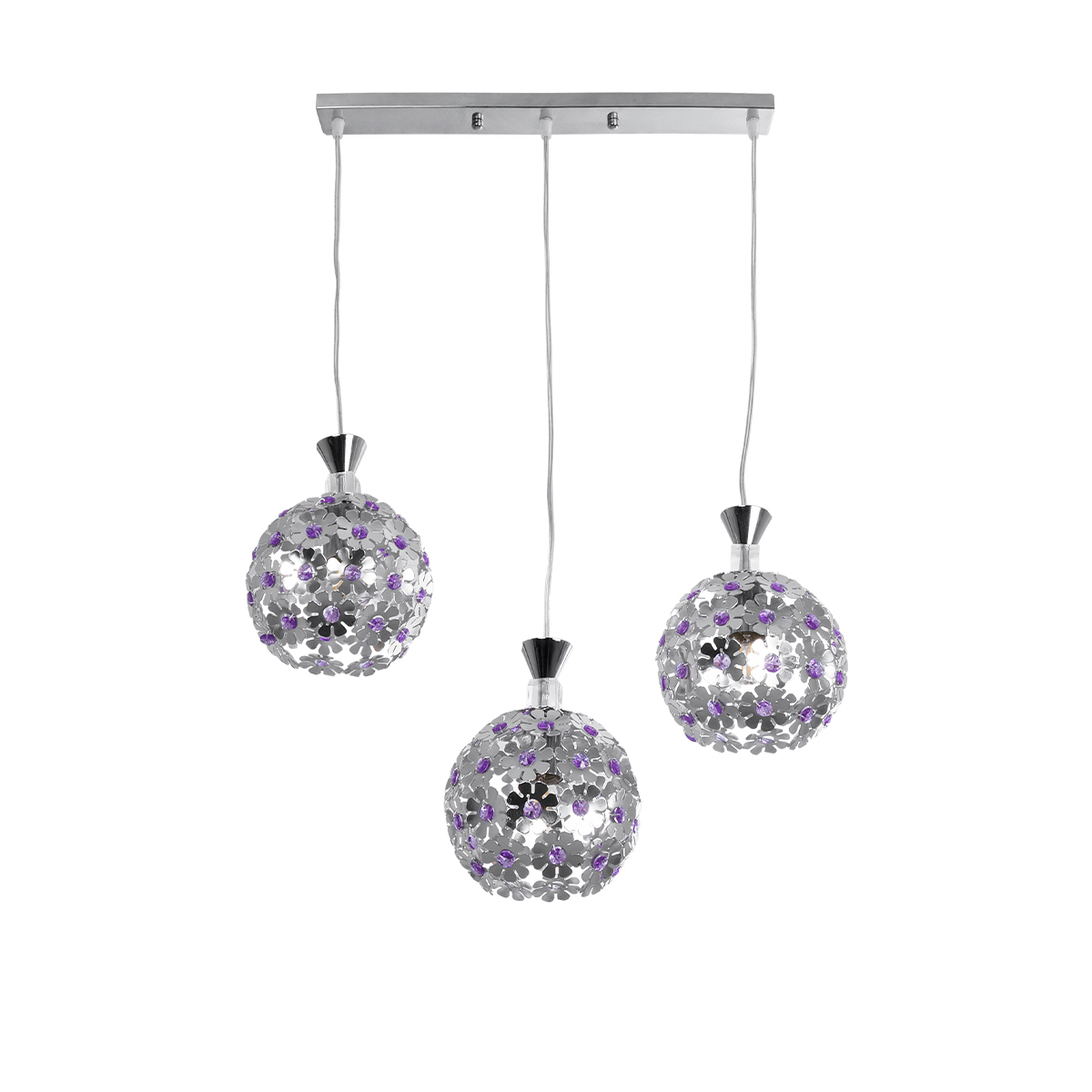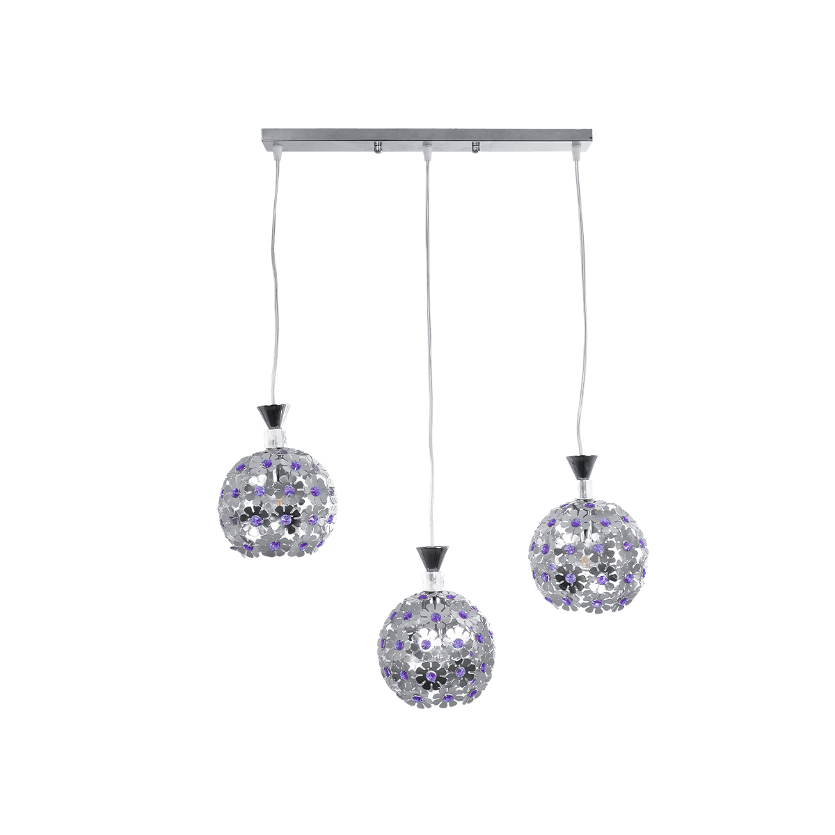 GLOBOSTAR® BOUQUET 01249 Μοντέρνο Κρεμαστό Φωτιστικό Οροφής με Ντουί 3 x E27 AC 220-240V IP20 - Ασημί & Μωβ - Μ66 x Π18 x Υ24cm
