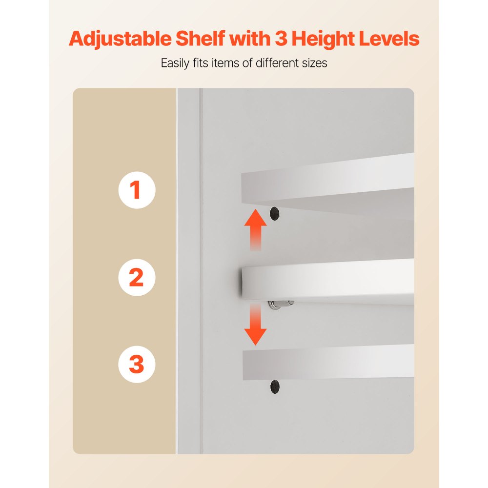 Σχεδιασμός εξοικονόμησης χώρου: Το ντουλάπι τοίχου του μπάνιου χρησιμοποιεί έξυπνα τον κάθετο χώρο, τοποθετώντας το ευέλικτα πάνω από διάφορους τοίχους. Βελτιώνει εύκολα την αξιοποίηση του χώρου, καθιστώντας το μια εξαιρετική επιλογή για βελτιστοποίηση χώρου. Πολυεπίπεδη Αποθήκευση με Μικρές Αγγελίες: Τα επιστημονικά χωρίσματα αποθήκευσης διευκρινίζουν την ταξινόμηση των αντικειμένων. Αυτό το κρεμαστό ντουλάπι μπάνιου διαθέτει προσεγμένο σχεδιασμό σε στρώσεις. Χωράει μπουκάλια και κουτιά όλων των μεγεθών, ώστε να μπορείτε να τα παίρνετε και να τα αποθηκεύετε χωρίς ακαταστασία. Ρυθμιζόμενο ράφι: Το επιτοίχιο ντουλάπι μπάνιου διαθέτει ρυθμιζόμενο ράφι με 3 επίπεδα ύψους, σχεδιασμένο να προσαρμόζεται ελεύθερα σε αντικείμενα διαφορετικού ύψους. Η ευέλικτη διάταξη καλύπτει τις ποικίλες ανάγκες αποθήκευσης, μεγιστοποιώντας την αξιοποίηση του χώρου του μπάνιου. Ανθεκτική κατασκευή: Το επίτοιχο ντουλάπι μπάνιου μας είναι κατασκευασμένο από μοριοσανίδα και MDF. Η στιβαρή κατασκευή εξασφαλίζει ανθεκτικότητα. Είναι ανθεκτικό στη συμπίεση και αδιάβροχο, και παραμένει ανθεκτικό μετά από μακροχρόνια χρήση. Εύκολη εγκατάσταση: Αυτό το ντουλάπι αποθήκευσης μπάνιου διαθέτει σχεδιασμό τοποθέτησης στον τοίχο, συνοδεύεται από ένα πλήρες σετ εργαλείων εγκατάστασης και λεπτομερείς οδηγίες. Δεν απαιτούνται επαγγελματικές δεξιότητες ή επιπλέον εργαλεία—οι αρχάριοι μπορούν να ολοκληρώσουν γρήγορα τη συναρμολόγηση.