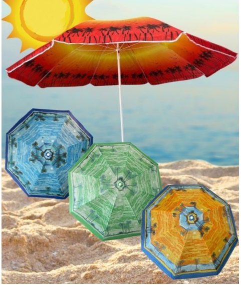 Ομπρέλα θαλάσσης με σχέδιο, ιδανική για την παραλία, το camping ή τον κήπο σας. Με πανί από 100% αδιάβροχο πολυεστερικό ύφασμα. Διαθέτει βάση 2 τμημάτων, δίσπαστη, αιχμηρό τελείωμα για εύκολη τοποθέτηση στην άμμο και ρυθμιζόμενο ύψος με σταθεροποιητή-κλιπ.