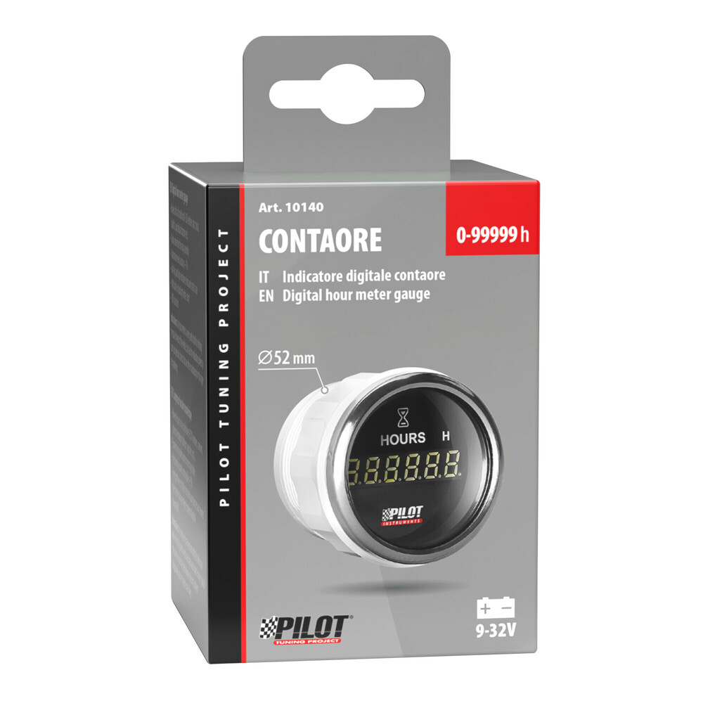 ΩΡΟΜΕΤΡΟ/ΜΕΤΡΗΤΗΣ ΩΡΑΣ ΛΕΙΤΟΥΡΓΙΑΣ ΚΙΝΗΤΗΡΑ ΨΗΦΙΑΚΟ ΜΑΥΡΟ /ΛΕΥΚΟ ΦΩΣ BLACK DIGITAL SERIES 9-32V 52mm