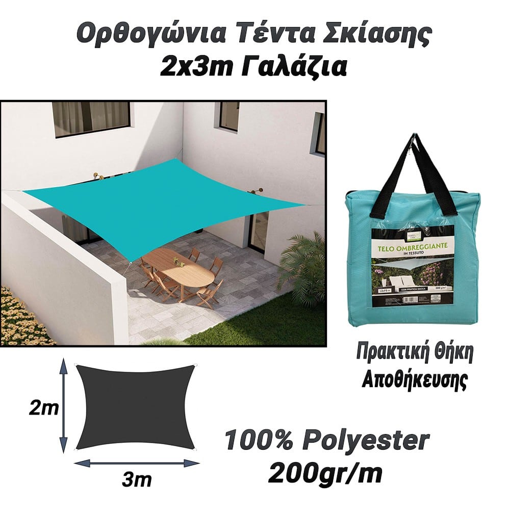 Ορθογώνια Τέντα Σκίασης 2x3m Γαλάζια
