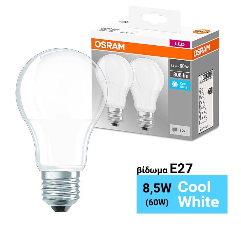 2 Λάμπες OSRAM 8.5W E27 LED COOL