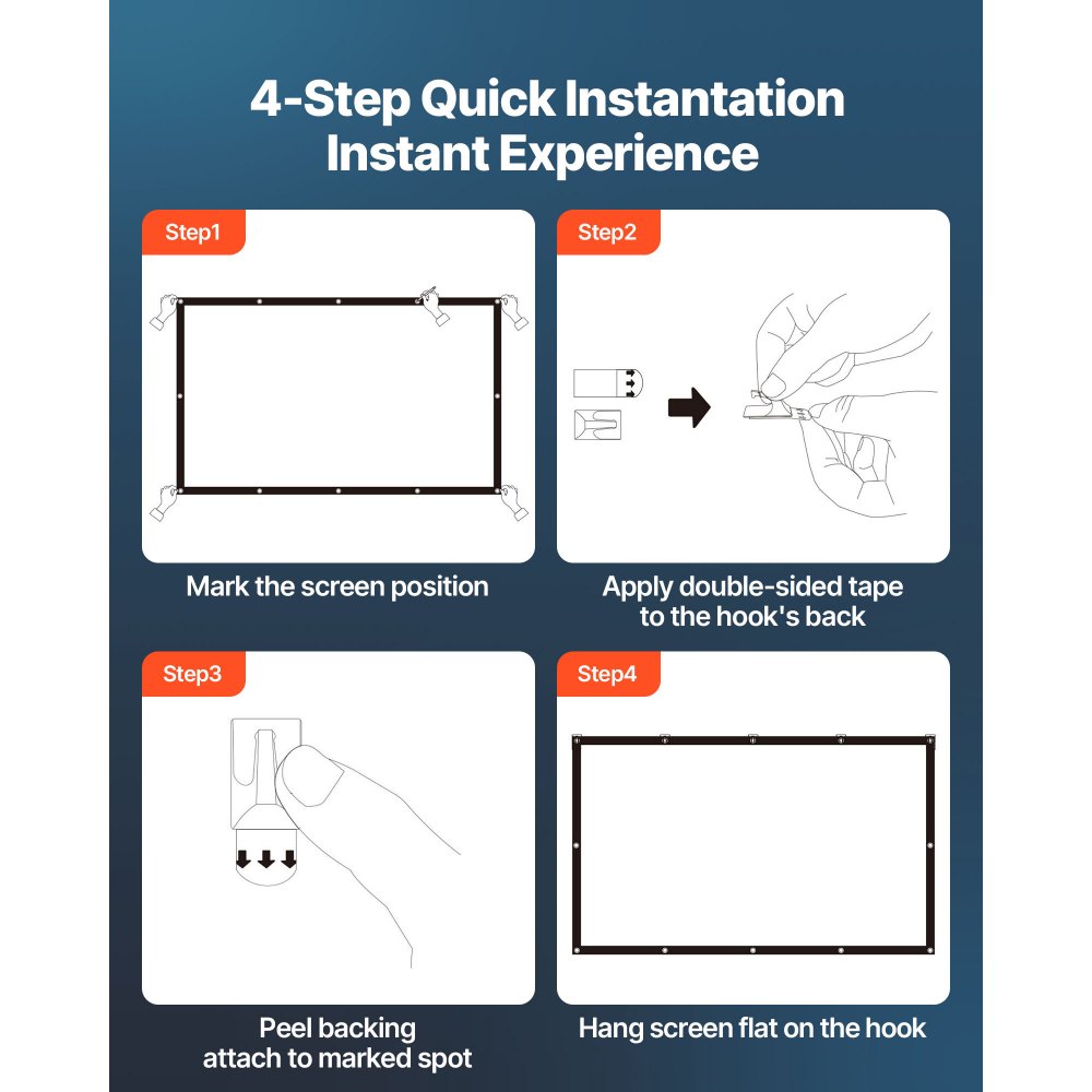 Εξαιρετικά & Ζωντανά Οπτικά: Κατασκευασμένη από υλικό υψηλής ανακλαστικότητας και χωρίς ρυτίδες, η οθόνη προβολέα προσφέρει οπτικά εφέ 4K και υψηλής ευκρίνειας 3D με κλείστρο. Το κάδρο αποδίδεται λεπτομερώς, εξασφαλίζοντας μια άψογη, καθηλωτική κινηματογραφική εμπειρία σε σκοτεινό και φωτεινό περιβάλλον. Ευρείες γωνίες θέασης: Με σχεδιασμό προβολής ευρείας γωνίας 160°, η οθόνη προβολής μας διασφαλίζει ότι οι θεατές μπορούν να καταγράφουν ευκρινείς, καθαρές εικόνες από οποιαδήποτε θέση. Αυτό βελτιώνει την ευελιξία θέασης, καθιστώντας κάθε γωνιά ένα εξαιρετικό σημείο για να απολαύσετε την παράσταση. Ευκρινής Οθόνη και από τις Δύο Πλευρές: Ο προβολέας υποστηρίζει προβολή από εμπρός και από πίσω, η καθαρότητα διπλής όψης και το υλικό υψηλής διαπερατότητας εξασφαλίζουν ευκρινή απεικόνιση και από τις δύο πλευρές, μοιράζοντας ζωντανά και ελκυστικά οπτικά εφέ με όσους σας ενδιαφέρουν. Εγκατάσταση σε 4 βήματα: Δεν χρειάζονται τα περίπλοκα βήματα εγκατάστασης, απλώς εγκαθιστάτε την οθόνη σε 4 εύκολα βήματα για γρήγορη, εξοικονόμηση χρόνου και εργασίας. Ευέλικτη χρήση: Πείτε αντίο στους περιορισμούς των μικρών τηλεοράσεων ή οθονών. Η οθόνη προβολέα μας προσφέρει μια ιδιωτική εικόνα κινηματογραφικής ποιότητας οποιαδήποτε στιγμή, οπουδήποτε. Είτε βρίσκεστε σε εσωτερικό είτε σε εξωτερικό χώρο, κάθε θεατής μπορεί να απολαύσει ζωντανά, κρυστάλλινα γραφικά.