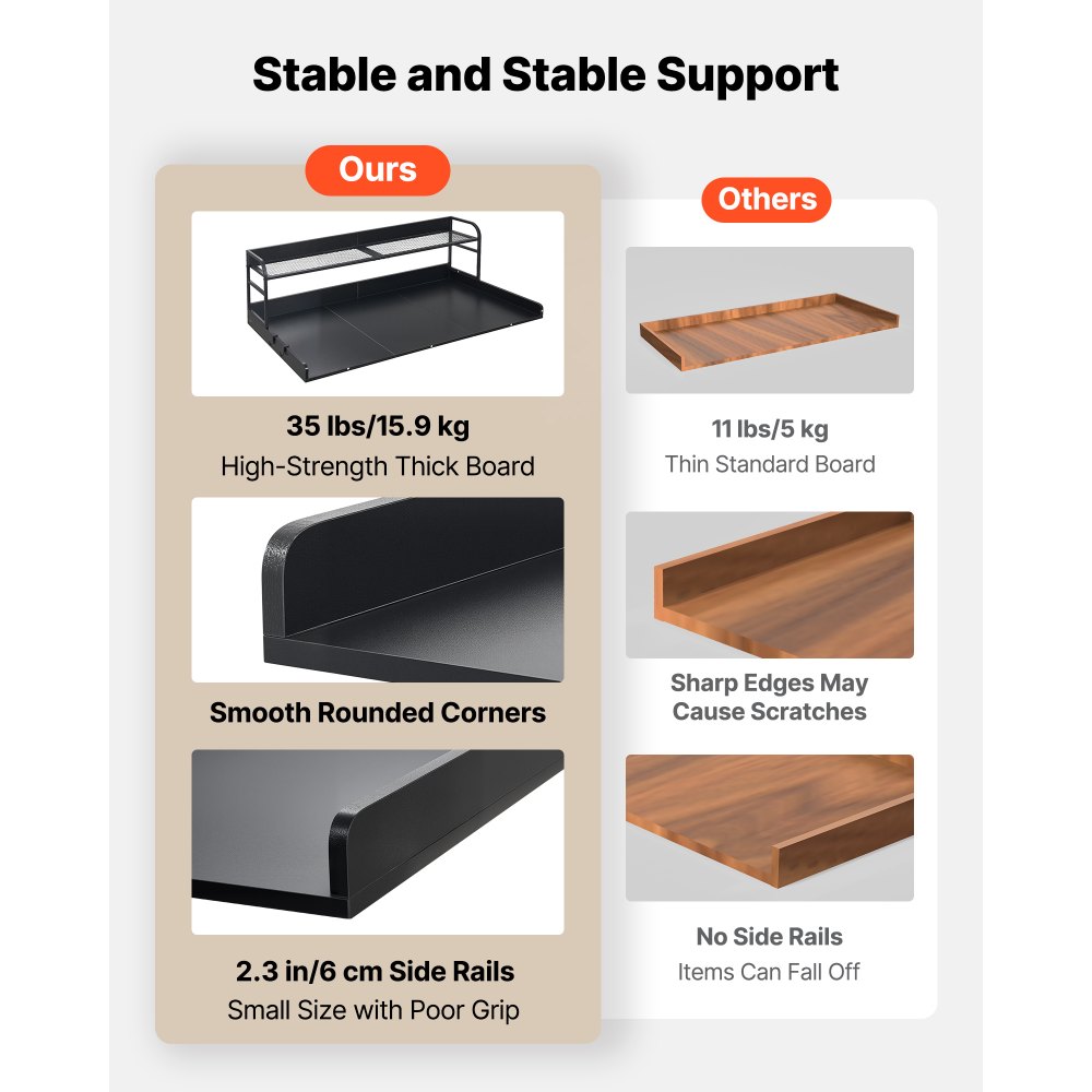 Αριθμός μοντέλου αντικειμένου: DX0202-C250400S-01Χωρητικότητα φορτίου: 250 λίβρες/113 κιλάΎψος ραφιού: 34,2 εκ.Διαστάσεις εσωτερικού άνω μέρους ραφιού: 52,7 x 9,5 ίντσες/134 x 24,2 εκ.Ύψος πάνελ ραφιού: 5 εκ.Ύψος κιγκλιδώματος: Πλευρικά πάνελ 2,3 ίντσες/6 εκ., Πίσω πάνελ 3,9 ίντσες/10 εκ.Κύριο υλικό: Μοριοσανίδα βαθμού P2 0,59 ίντσες/15 mmΧρώμα: ΜαύροΔιαστάσεις προϊόντος: 53,9 x 27,5 x 16,5 ίντσες/137 x 69,9 x 41,9 εκ.