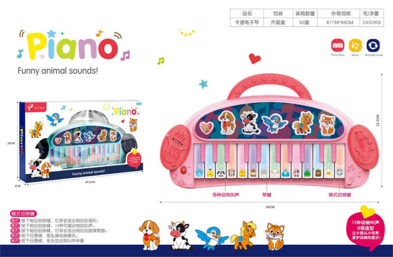 Παιδικό εκπαιδευτικό πιάνο, σε υπέροχο πολύχρωμο σχεδιασμό, με πολλαπλές λειτουργίες και εκπαιδευτικούς ήχους από ζωάκια, για τους μικρούς λάτρεις της μουσικής.