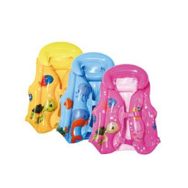 Φουσκωτό σωσίβιο γιλέκο με κινούμενα σχέδια. Με έξτρα ενίσχυση αυχένα και κούμπωματα ασφαλείας. Κατασκευασμένο από μαλακό, ανθεκτικό PVC, μη τοξικό, απόλυτα φιλικό στο δέρμα. Άνετη και σταθερή εφαρμογή. Μέγεθος 50cm.