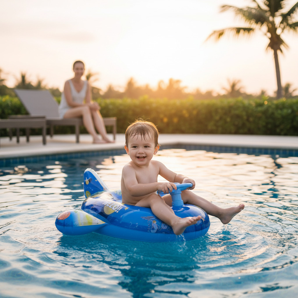 Παιδικό φουσκωτό σωσίβιο με τιμόνι και κάθισμα - 155006 - Blue