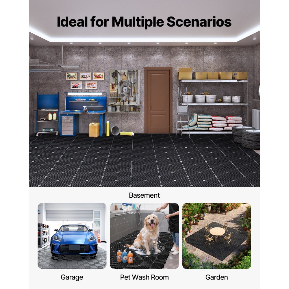 Αδιάβροχο & Αντιολισθητικό: Αυτό το αλληλοσυνδεόμενο στρώμα αποστράγγισης διαθέτει αναβαθμισμένο, παχύτερο σχεδιασμό αποστράγγισης για ταχύτερη και πιο αποτελεσματική ροή νερού. Μειώνει τη συσσώρευση επιφανειακού νερού, βοηθώντας στη διατήρηση της φρέσκιας περιοχής και παρέχοντας μια ασφαλή βάση σε υγρές περιοχές. Εύκαμπτο αλλά ανθεκτικό υλικό: Κατασκευασμένο από αναβαθμισμένο PP, αυτό το πλακάκι δαπέδου γκαράζ με αλληλοσυνδεόμενα στοιχεία είναι ανθεκτικό αλλά εύκολο στην κάμψη, ενώ παράλληλα αντέχει στη διάβρωση, τη φθορά και την παραμόρφωση. Εξασφαλίζει μακροχρόνια απόδοση ακόμη και σε συνεχώς υγρά περιβάλλοντα. Εύκολο καθάρισμα και συντήρηση: Η επιφάνεια PP αυτού του αρθρωτού στρώματος αποστράγγισης αντιστέκεται στη συσσώρευση τριχών και λίπους, επιτρέποντάς σας να το ξεπλύνετε ή να το σκουπίσετε απλά. Αποκαθιστά γρήγορα τη φρεσκάδα και εξοικονομεί χρόνο και προσπάθεια στην καθημερινή συντήρηση. Εύκολη συναρμολόγηση, προσαρμοσμένη διάταξη: Αυτό το πλακάκι δαπέδου γκαράζ διαθέτει σχεδιασμό αλληλοσύνδεσης για γρήγορη συναρμολόγηση. Διατίθεται προαιρετική επένδυση άκρων (πωλείται ξεχωριστά) για να σας επιτρέπει να προσαρμόσετε τη διάταξη ώστε να ταιριάζει σε διαφορετικούς χώρους και ανάγκες εγκατάστασης. Ευέλικτο για πολλαπλές εφαρμογές: Αυτό το στρώμα δαπέδου αποστράγγισης πισίνας είναι ιδανικό για μπάνια, πισίνες και άλλους υγρούς χώρους, καθώς και για κουζίνες, εστιατόρια και χώρους εστίασης όπου η αποστράγγιση και η αντιολισθητική προστασία είναι απαραίτητες.