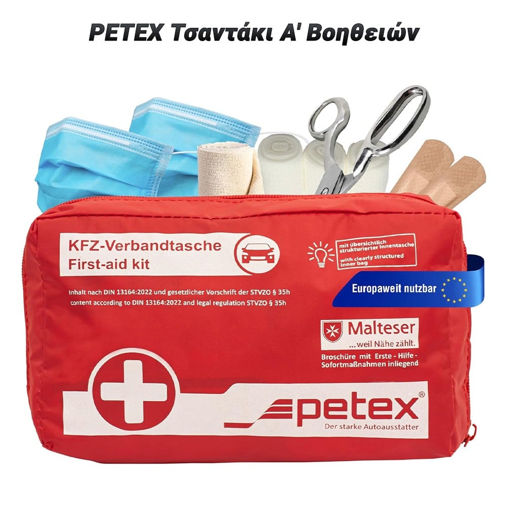 Με το PETEX Τσαντάκι Α' Βοηθειών DIN13164, είστε έτοιμοι για οποιαδήποτε κατάσταση έκτακτης ανάγκης και απρόοπτης κατάστασης. Σχεδιασμένο για να καλύπτει τις ανάγκες πρώτων βοηθειών, αυτό το τσαντάκι περιλαμβάνει μια ποικιλία αναγκαίων ειδών για την αντιμετώπιση μικρών ή μεσαίων τραυματισμών. Κύρια Χαρακτηριστικά: Πλήρες Σετ Πρώτων Βοηθειών: Το PETEX Τσαντάκι Α' Βοηθειών περιλαμβάνει όλα τα απαραίτητα είδη πρώτων βοηθειών σύμφωνα με τις προδιαγραφές DIN13164, προσφέροντας πρακτική και άμεση βοήθεια σε περιπτώσεις ατυχημάτων ή εκτάκτων αναγκών. Αξιόπιστη Ποιότητα: Κατασκευασμένο από ανθεκτικά υλικά υψηλής ποιότητας, το τσαντάκι είναι σχεδιασμένο για μακροχρόνια αντοχή και αξιοπιστία σε κάθε περίπτωση. Εύκολη Αποθήκευση και Μεταφορά: Το μικρό και ελαφρύ σχέδιο του, το καθιστά εύκολο στην αποθήκευση και μεταφορά σε οποιοδήποτε μέρος του. Ασφάλεια Πάνω απ' όλα: Με το PETEX Τσαντάκι Α' Βοηθειών DIN13164, έχετε την ασφάλεια που χρειάζεστε σε περίπτωση ανάγκης, προσφέροντας γρήγορη αντίδραση και πρώτες βοήθειες με άμεσο και αποτελεσματικό τρόπο. Μην αφήνετε τίποτα να εμποδίσει την ασφάλεια σας! Περιλαμβάνει: 1 ψαλίδι DIN58279-A145 1 τριγωνικό επίδεσμο DIN13168 1 κουβέρτα εκτάκτου ανάγκης 160x210cm 2 ελαστικούς επιδέσμους DIN61634-FB6 3 ελαστικούς επιδέσμους DIN61634-FB8 1 αυτοκόλλητη ταινία DIN13019-A 14 αυτοκόλλητα επιθέματα τραυμάτων 1 ρολό αυτοκόλλητου επιδέσμου DIN13151-G 1 ρολό αυτοκόλλητου επιδέσμου DIN13151-K 2 ρολά αυτοκόλλητου επιδέσμου DIN13151-M 1 επίθεμα εγκαυμάτων DIN13152-A 6 κομπρέσες τραυμάτων 10x10cm 4 γάντια DIN EN455 2 καθαριστικά μαντηλάκια 2 μάσκες προστασίας EN14683:2019 1 φυλλάδιο οδηγιών