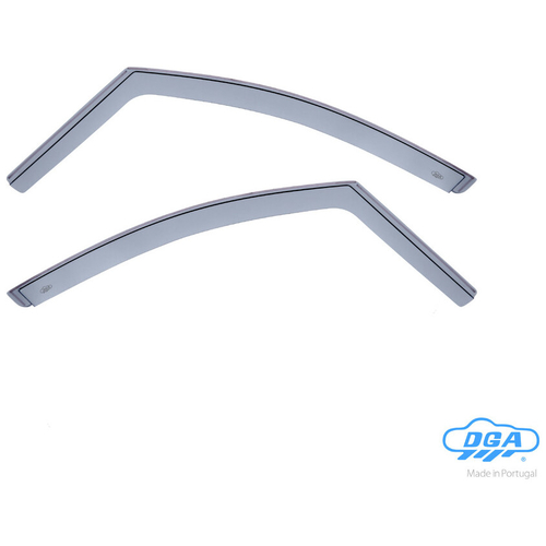 Ανεμοθραύστες παραθύρων από την εταιρία DGA, πορτογαλικής προέλευσης, κατασκευασμένοι από ειδικό πλαστικό υψηλής ποιότητας και εξαιρετικής αντοχής σε φιμέ, κατάλληλοι για τις μπροστά πόρτες του οχήματός σας. Τοποθετούνται κολλητοί/χωνευτοί μέσα στην υποδοχή του τζαμιού (τσιμούχα παραθύρου) με ταινία διπλής όψης (περιλαμβάνεται στη συσκευασία), χωρίς να επηρεάζουν καθόλου την εύρυθμη λειτουργία του τζαμιού, τον μηχανισμό του παραθύρου ή τις αντιηλιακές μεμβράνες σας (φιλμ παραθύρων).