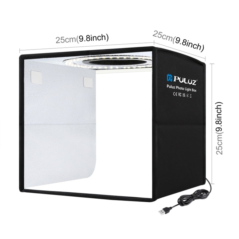 Photo Studio Cube-Box LED – Ο Απόλυτος Σύμμαχος για Επαγγελματικές Φωτογραφίες! Το Photo Studio Cube-Box LED είναι η ιδανική λύση για φωτογράφους που επιθυμούν να αποτυπώσουν τα προϊόντα ή τα αντικείμενά τους με επαγγελματική ποιότητα φωτισμού. Το Cube-Box παρέχει ομοιόμορφο φωτισμό χωρίς ανεπιθύμητες ανακλάσεις, εξασφαλίζοντας εξαιρετικά αποτελέσματα σε κάθε λήψη. Είτε είστε επαγγελματίας φωτογράφος είτε ερασιτέχνης, αυτό το φωτιστικό σύστημα θα αναβαθμίσει την ποιότητα των φωτογραφιών σας, κάνοντάς τες να ξεχωρίζουν.Το Photo Studio Cube-Box LED είναι απαραίτητο για κάθε eshop ή influencer που θέλει άριστα αποτελέσματα σε κάθε "κλικ" του φακού! Χαρακτηριστικά: ✔ Ομοιόμορφος Διπλός Φωτισμός LED – Παρέχει σταθερό φωτισμό με επιλογές φωτεινότητας και θερμοκρασίας για καλύτερη φωτογραφία με ακριβή χρώματα.✔ Εύκολη Συναρμολόγηση – Απλό στην τοποθέτηση και αποθήκευση, ιδανικό και για φορητή χρήση.✔ Αναδιπλούμενος Σχεδιασμός – Κατάλληλο για εύκολη μεταφορά και αποθήκευση, χωρίς να καταλαμβάνει πολύ χώρο.✔ Πολλαπλές Επιλογές Background – Με 12 διαφορετικά background για να επιλέξετε αυτό που ταιριάζει σε κάθε περίσταση.✔ Ιδανικό για Στούντιο και Ατομική Χρήση – Τέλειο για φωτογραφίες προϊόντων, αντικειμένων και πολλά άλλα. Αναβαθμίστε τις φωτογραφίες σας με το Photo Studio Cube-Box LED και απολαύστε επαγγελματικά αποτελέσματα με εύκολη και πρακτική χρήση! Διαστάσεις: 25x25x25cm