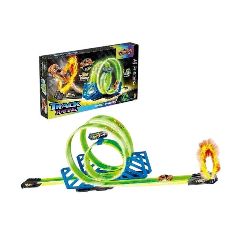Αυτοκινητόδρομος πίστα με περιστροφή 360 μοιρών, εκτοξευτή και αξεσουάρ.