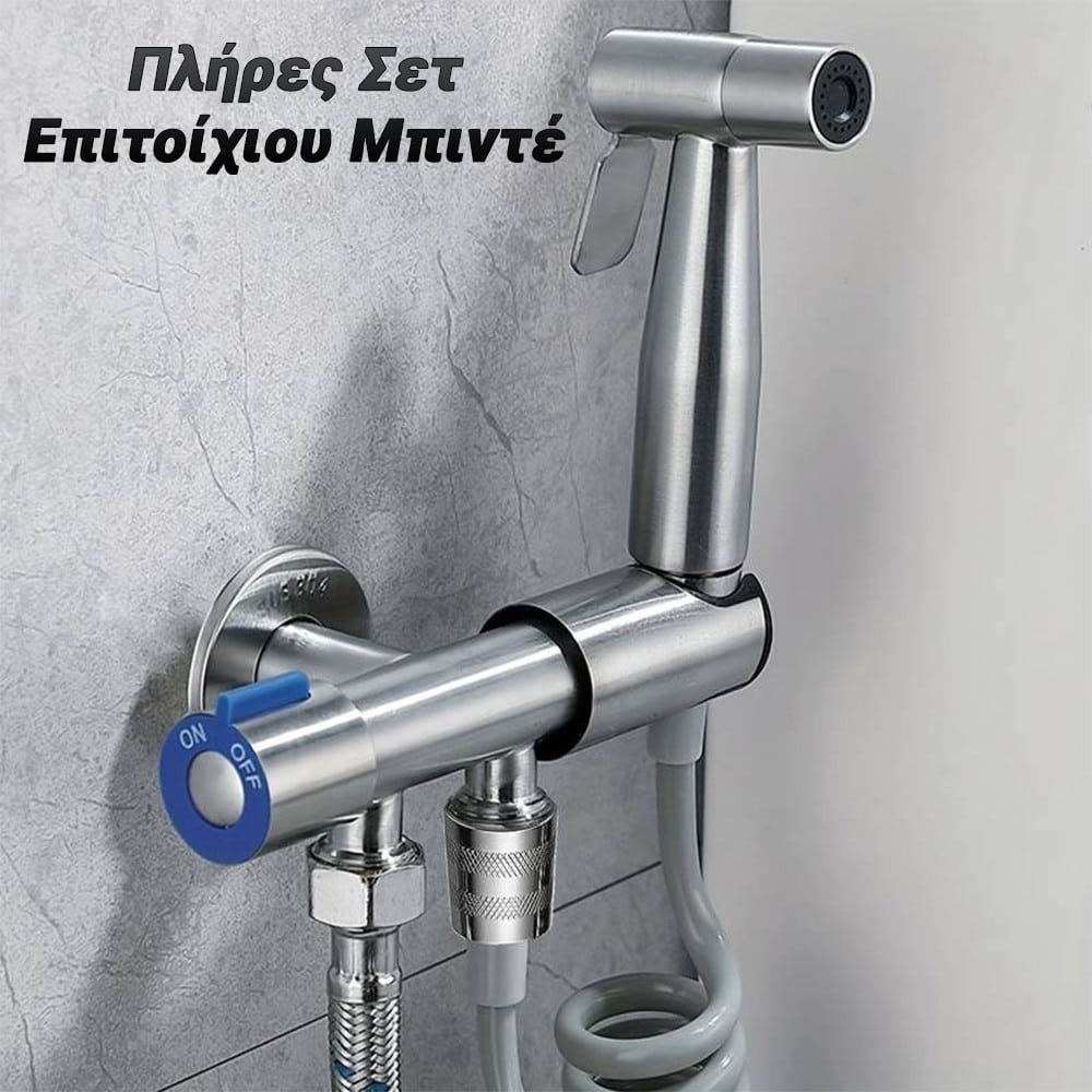 Το Επιτοίχιο Σετ Μπιντέ, είναι κατάλληλο για τον καθαρισμό των ευαίσθητων περιοχών μετά τη χρήση της λεκάνης. Δε σχετίζεται με το μπιντέ ως είδος υγιεινής, αλλά συνδυάζεται αποτελεσματικά με τη λεκάνη.Αποτελείται από έναν διακόπτη επιλογής ροής νερού, σπιράλ και τηλέφωνο. Ο καθαρισμός με τρεχούμενο νερό προσφέρει υγιεινή αλλά θεωρείται και πιο αποτελεσματικός, σε σχέση με τον απλό καθαρισμό με χαρτί υγείας. Είναι ιδανική λύση για άτομα που υποφέρουν από αιμορροΐδες, καθώς με τη χρήση του μπιντέ η περιοχή δεν ερεθίζεται.Επίσης μειώνεται αισθητά η κατανάλωση του χαρτιού υγείας, καθώς χρησιμοποιείται μόνο για το στέγνωμα της περιοχής. Έτσι το καλάθι της τουαλέτας παύει να είναι εστία άσχημων μυρωδιών και παραμένει καθαρό με πολύ λιγότερα χαρτιά αλλά και χωρίς ακαθαρσίες. Τοποθετείται στον τοίχο, δίπλα στην λεκάνη στην ήδη υπάρχουσα εγκατάσταση.Εκτός από τη χρήση για την προσωπική υγιεινή, μπορεί να χρησιμοποιηθεί για τον καθαρισμό της λεκάνης και του μπάνιου.