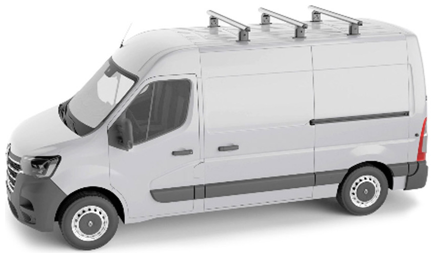 Πλήρες kit με μπάρες οροφής της επαγγελματικής σειράς AIRDYN από την εταιρία MENABO, 100% ιταλικής προέλευσης και κατασκευής από υψηλής ποιότητας ελαφρύ, ανθεκτικό αλουμίνιο σε ασημί χρώμα. Κατάλληλες για χρήση σε συγκεκριμένα επαγγελματικά οχήματα και van.