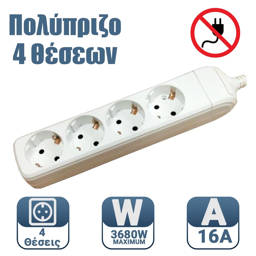 ΧΑΡΑΚΤΗΡΙΣΤΙΚΑ Χρώμα Προϊόντος:Λευκό/ White Αριθμός Σούκο:4 Τάση Τροφοδοσίας (V):220-240V Συχνότητα Λειτουργίας (Hz):50/60Hz Ονομαστική Ισχύς (W):3680W Προστασία Επαφών:Όχι/ No Γείωση Αντικειμένου:Ναι/ Yes Ένταση Ρεύματος (Α):16A Βαθμός Στεγανότητας (IP):IP20 Μήκος:260mm Πλάτος:50mm Ύψος:45mm Μεικτό Βάρος Προϊόντος (Kg):0,850kg Κιβωτοποίηση (τεμ):1\5\80 Συσκευασία:PVC Nylon Bag with Paper Card Χρόνια Εγγύησης:2 Χρόνια/ 2 Years Πιστοποιητικά:Ναι/ Yes Ένδειξη CE:Ναι/ Yes Αριθμός Καταχώρησης:529/5493 Θερμοκρασία Λειτουργίας °C:-15°C - +50°C Υλικό Προϊόντος:Πολυπροπυλένιο/ PP