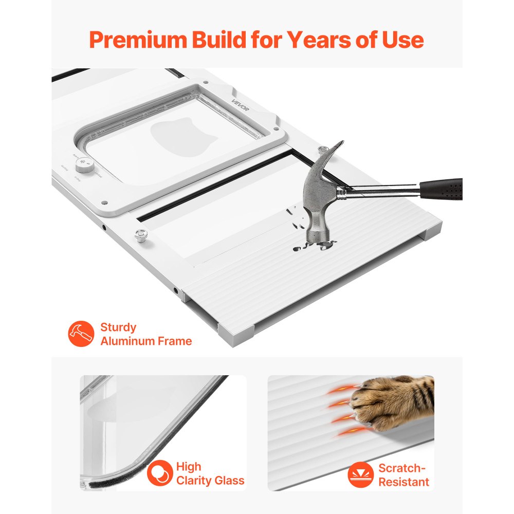 Μετρήστε πριν από την αγορά: Μετρήστε το κατοικίδιό σας και το πλαίσιο του παραθύρου πριν από την αγορά. Αυτή η πόρτα για γάτες περιλαμβάνει ρυθμιζόμενο μήκος 5 ιντσών για να εξασφαλίσει άνετη εφαρμογή για τη γάτα σας και σωστή συμβατότητα με τα παράθυρα. Σύστημα κλειδώματος 4 κατευθύνσεων: Εναλλαγή μεταξύ λειτουργίας μόνο εισόδου, μόνο εξόδου, διπλής πρόσβασης ή πλήρους κλειδώματος. Αυτή η πόρτα γατιών με παράθυρο αλουμινίου προσφέρει στη γάτα σας ευέλικτη κίνηση, ενώ παράλληλα βοηθά στη διατήρηση ενός ήρεμου περιβάλλοντος στο σπίτι. Ομαλό αυτόματο κλείσιμο και στεγανή σφράγιση: Το μαγνητικό πτερύγιο συνδυάζεται με μια άκρη με επένδυση βουρτσίσματος για ομαλό, αθόρυβο αυτόματο κλείσιμο και ασφαλή σφράγιση. Η πόρτα παραθύρου για κατοικίδια βοηθά να διατηρείται ο εσωτερικός σας χώρος ζεστός και καθαρός καθώς η γάτα σας κινείται. Εγκατάσταση χωρίς εργαλεία: Δεν χρειάζεται τρύπημα. Απλώς τοποθετήστε την πόρτα κατοικίδιων για το παράθυρο στη ράγα του παραθύρου, σφίξτε τα πόμολα και απολαύστε μια γρήγορη, τακτοποιημένη εγκατάσταση. Πλαίσιο από κράμα αλουμινίου υψηλής ποιότητας: Κατασκευασμένο με στιβαρό πλαίσιο από κράμα αλουμινίου και ένα διαφανές, ανθεκτικό στις γρατσουνιές πτερύγιο, αυτό το παράθυρο πόρτας για κατοικίδια για γάτες αντέχει στην καθημερινή χρήση και στις περίεργες περιπέτειες της γάτας σας.
