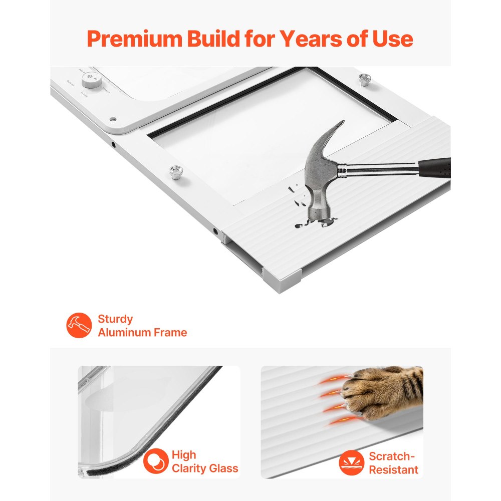 Μετρήστε πριν από την αγορά: Μετρήστε το κατοικίδιό σας και το πλαίσιο του παραθύρου πριν από την αγορά. Αυτή η πόρτα για γάτες περιλαμβάνει ρυθμιζόμενο μήκος 5 ιντσών για να εξασφαλίσει άνετη εφαρμογή για τη γάτα σας και σωστή συμβατότητα με τα παράθυρα. Σύστημα κλειδώματος 4 κατευθύνσεων: Εναλλαγή μεταξύ λειτουργίας μόνο εισόδου, μόνο εξόδου, διπλής πρόσβασης ή πλήρους κλειδώματος. Αυτή η πόρτα γατιών με παράθυρο αλουμινίου προσφέρει στη γάτα σας ευέλικτη κίνηση, ενώ παράλληλα βοηθά στη διατήρηση ενός ήρεμου περιβάλλοντος στο σπίτι. Ομαλό αυτόματο κλείσιμο και στεγανή σφράγιση: Το μαγνητικό πτερύγιο συνδυάζεται με μια άκρη με επένδυση βουρτσίσματος για ομαλό, αθόρυβο αυτόματο κλείσιμο και ασφαλή σφράγιση. Η πόρτα παραθύρου για κατοικίδια βοηθά να διατηρείται ο εσωτερικός σας χώρος ζεστός και καθαρός καθώς η γάτα σας κινείται. Εγκατάσταση χωρίς εργαλεία: Δεν χρειάζεται τρύπημα. Απλώς τοποθετήστε την πόρτα κατοικίδιων για το παράθυρο στη ράγα του παραθύρου, σφίξτε τα πόμολα και απολαύστε μια γρήγορη, τακτοποιημένη εγκατάσταση. Πλαίσιο από κράμα αλουμινίου υψηλής ποιότητας: Κατασκευασμένο με στιβαρό πλαίσιο από κράμα αλουμινίου και ένα διαφανές, ανθεκτικό στις γρατσουνιές πτερύγιο, αυτό το παράθυρο πόρτας για γάτες αντέχει στην καθημερινή χρήση και στις περίεργες περιπέτειες της γάτας σας.