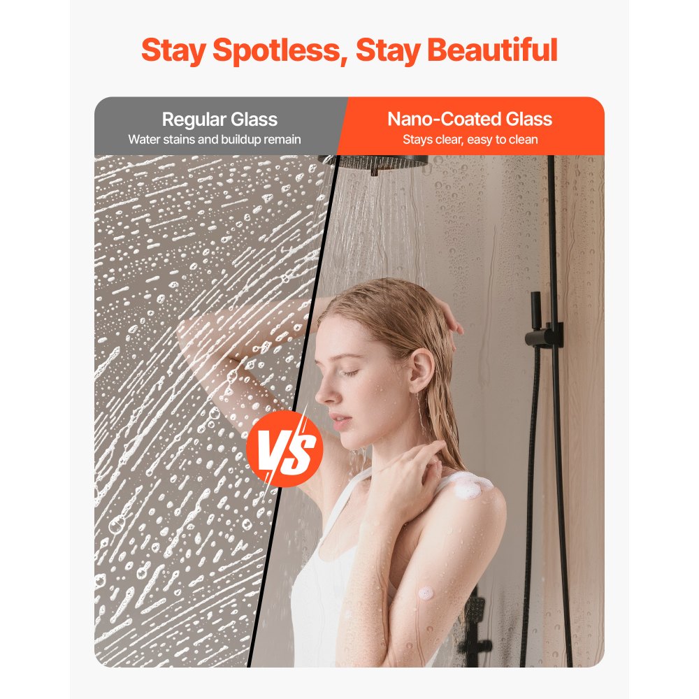 Πόρτα ντους VEVOR χωρίς πλαίσιο, 1219 mm Π x 1930 mm Υ, Συρόμενη γυάλινη πόρτα ντους με διαφανές σκληρυμένο γυαλί πάχους 10 mm, αθόρυβη, ανθεκτική στη θραύση νανοεπίστρωση, με ράγα, ταινία στεγανοποίησης και κιτ εξαρτημάτων