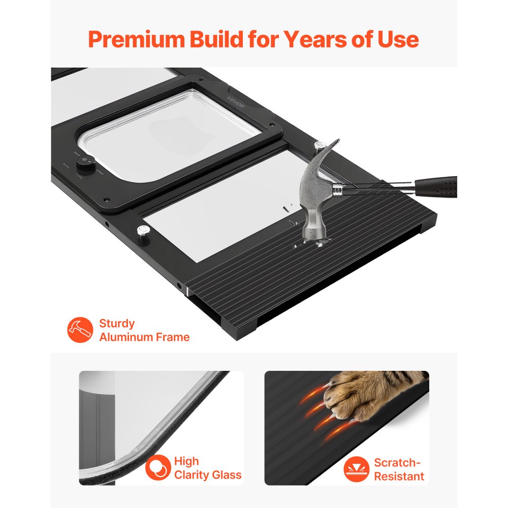 Μετρήστε πριν από την αγορά: Μετρήστε το κατοικίδιό σας και το πλαίσιο του παραθύρου πριν από την αγορά. Αυτή η πόρτα για γάτες περιλαμβάνει ρυθμιζόμενο μήκος 5 ιντσών για να εξασφαλίσει άνετη εφαρμογή για τη γάτα σας και σωστή συμβατότητα με τα παράθυρα. Σύστημα κλειδώματος 4 κατευθύνσεων: Εναλλαγή μεταξύ λειτουργίας μόνο εισόδου, μόνο εξόδου, διπλής πρόσβασης ή πλήρους κλειδώματος. Αυτή η πόρτα γατιών με παράθυρο αλουμινίου προσφέρει στη γάτα σας ευέλικτη κίνηση, ενώ παράλληλα βοηθά στη διατήρηση ενός ήρεμου περιβάλλοντος στο σπίτι. Ομαλό αυτόματο κλείσιμο και στεγανή σφράγιση: Το μαγνητικό πτερύγιο συνδυάζεται με μια άκρη με επένδυση βουρτσίσματος για ομαλό, αθόρυβο αυτόματο κλείσιμο και ασφαλή σφράγιση. Η πόρτα παραθύρου για κατοικίδια βοηθά να διατηρείται ο εσωτερικός σας χώρος ζεστός και καθαρός καθώς η γάτα σας κινείται. Εγκατάσταση χωρίς εργαλεία: Δεν χρειάζεται τρύπημα. Απλώς τοποθετήστε την πόρτα κατοικίδιων για το παράθυρο στη ράγα του παραθύρου, σφίξτε τα πόμολα και απολαύστε μια γρήγορη, τακτοποιημένη εγκατάσταση. Πλαίσιο από κράμα αλουμινίου υψηλής ποιότητας: Κατασκευασμένο με στιβαρό πλαίσιο από κράμα αλουμινίου και ένα διαφανές, ανθεκτικό στις γρατσουνιές πτερύγιο, αυτό το παράθυρο πόρτας για γάτες αντέχει στην καθημερινή χρήση και στις περίεργες περιπέτειες της γάτας σας.