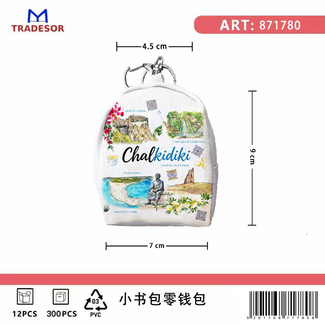 Πορτοφόλι Souvenir μπρελόκ mini - PVC - Chalkidiki - 7*9*4.5cm - 871780 Πορτοφόλι souvenir μπρελόκ από PVC, ιδανικό για την αποθήκευση κερμάτων, κλειδιών και μικροαντικειμένων στην καθημερινότητα. Κατασκευασμένο από ανθεκτικό PVC, προσφέρει προστασία από φθορές και υγρασία, ενώ το πρακτικό και ελαφρύ μέγεθός του το καθιστά εύκολο στη μεταφορά σε τσάντα ή σακίδιο. Το ενσωματωμένο μπρελόκ επιτρέπει την άμεση προσαρμογή σε κλειδιά, εξασφαλίζοντας γρήγορη πρόσβαση και ευκολία χρήσης όπου κι αν βρίσκεστε. Με μοντέρνο souvenir σχεδιασμό, αποτελεί μια πρακτική και λειτουργική επιλογή για καθημερινή χρήση, συνδυάζοντας αντοχή, ευκολία και κομψότητα σε ένα μικρό και χρήσιμο αξεσουάρ.