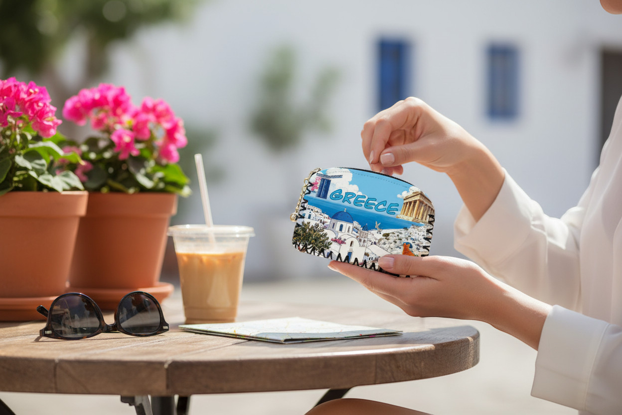 Πορτοφόλι Souvenir μπρελόκ - PVC - Greece - 14*9cm - 871756 Πορτοφόλι souvenir μπρελόκ από PVC, ιδανικό για την αποθήκευση κερμάτων, κλειδιών και μικροαντικειμένων στην καθημερινότητα. Κατασκευασμένο από ανθεκτικό PVC, προσφέρει προστασία από φθορές και υγρασία, ενώ το πρακτικό και ελαφρύ μέγεθός του το καθιστά εύκολο στη μεταφορά σε τσάντα ή σακίδιο. Το ενσωματωμένο μπρελόκ επιτρέπει την άμεση προσαρμογή σε κλειδιά, εξασφαλίζοντας γρήγορη πρόσβαση και ευκολία χρήσης όπου κι αν βρίσκεστε. Με μοντέρνο souvenir σχεδιασμό, αποτελεί μια πρακτική και λειτουργική επιλογή για καθημερινή χρήση, συνδυάζοντας αντοχή, ευκολία και κομψότητα σε ένα μικρό και χρήσιμο αξεσουάρ.