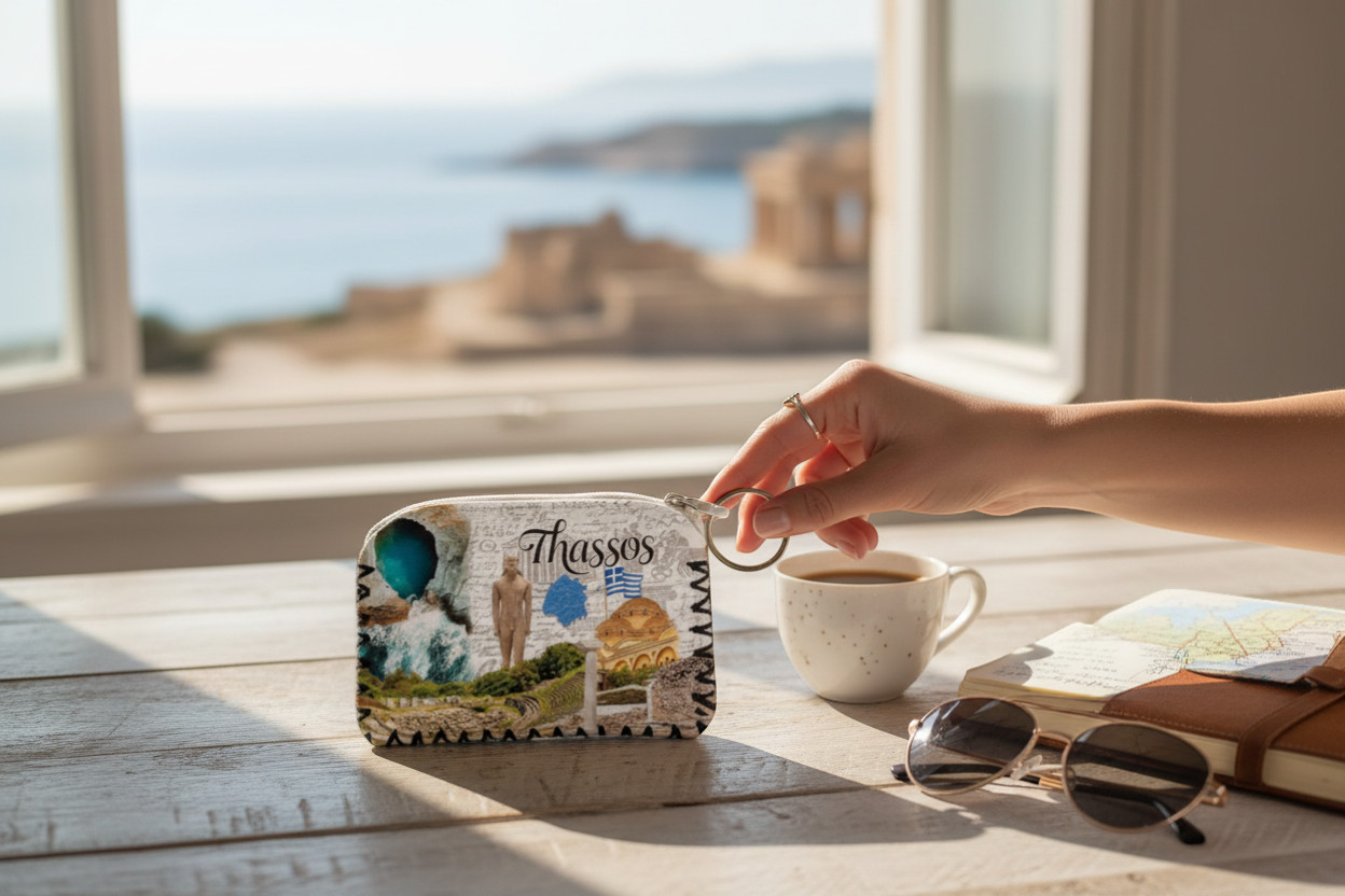 Πορτοφόλι Souvenir μπρελόκ - PVC - Thassos - 14*9cm - 871755 Πορτοφόλι souvenir μπρελόκ από PVC, ιδανικό για την αποθήκευση κερμάτων, κλειδιών και μικροαντικειμένων στην καθημερινότητα. Κατασκευασμένο από ανθεκτικό PVC, προσφέρει προστασία από φθορές και υγρασία, ενώ το πρακτικό και ελαφρύ μέγεθός του το καθιστά εύκολο στη μεταφορά σε τσάντα ή σακίδιο. Το ενσωματωμένο μπρελόκ επιτρέπει την άμεση προσαρμογή σε κλειδιά, εξασφαλίζοντας γρήγορη πρόσβαση και ευκολία χρήσης όπου κι αν βρίσκεστε. Με μοντέρνο souvenir σχεδιασμό, αποτελεί μια πρακτική και λειτουργική επιλογή για καθημερινή χρήση, συνδυάζοντας αντοχή, ευκολία και κομψότητα σε ένα μικρό και χρήσιμο αξεσουάρ.