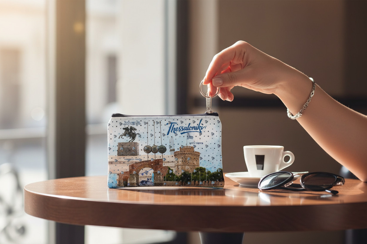 Πορτοφόλι Souvenir μπρελόκ - PVC - Thessaloniki - 11*7cm - 871726 Πορτοφόλι souvenir μπρελόκ από PVC, ιδανικό για την αποθήκευση κερμάτων, κλειδιών και μικροαντικειμένων στην καθημερινότητα. Κατασκευασμένο από ανθεκτικό PVC, προσφέρει προστασία από φθορές και υγρασία, ενώ το πρακτικό και ελαφρύ μέγεθός του το καθιστά εύκολο στη μεταφορά σε τσάντα ή σακίδιο. Το ενσωματωμένο μπρελόκ επιτρέπει την άμεση προσαρμογή σε κλειδιά, εξασφαλίζοντας γρήγορη πρόσβαση και ευκολία χρήσης όπου κι αν βρίσκεστε. Με μοντέρνο souvenir σχεδιασμό, αποτελεί μια πρακτική και λειτουργική επιλογή για καθημερινή χρήση, συνδυάζοντας αντοχή, ευκολία και κομψότητα σε ένα μικρό και χρήσιμο αξεσουάρ.