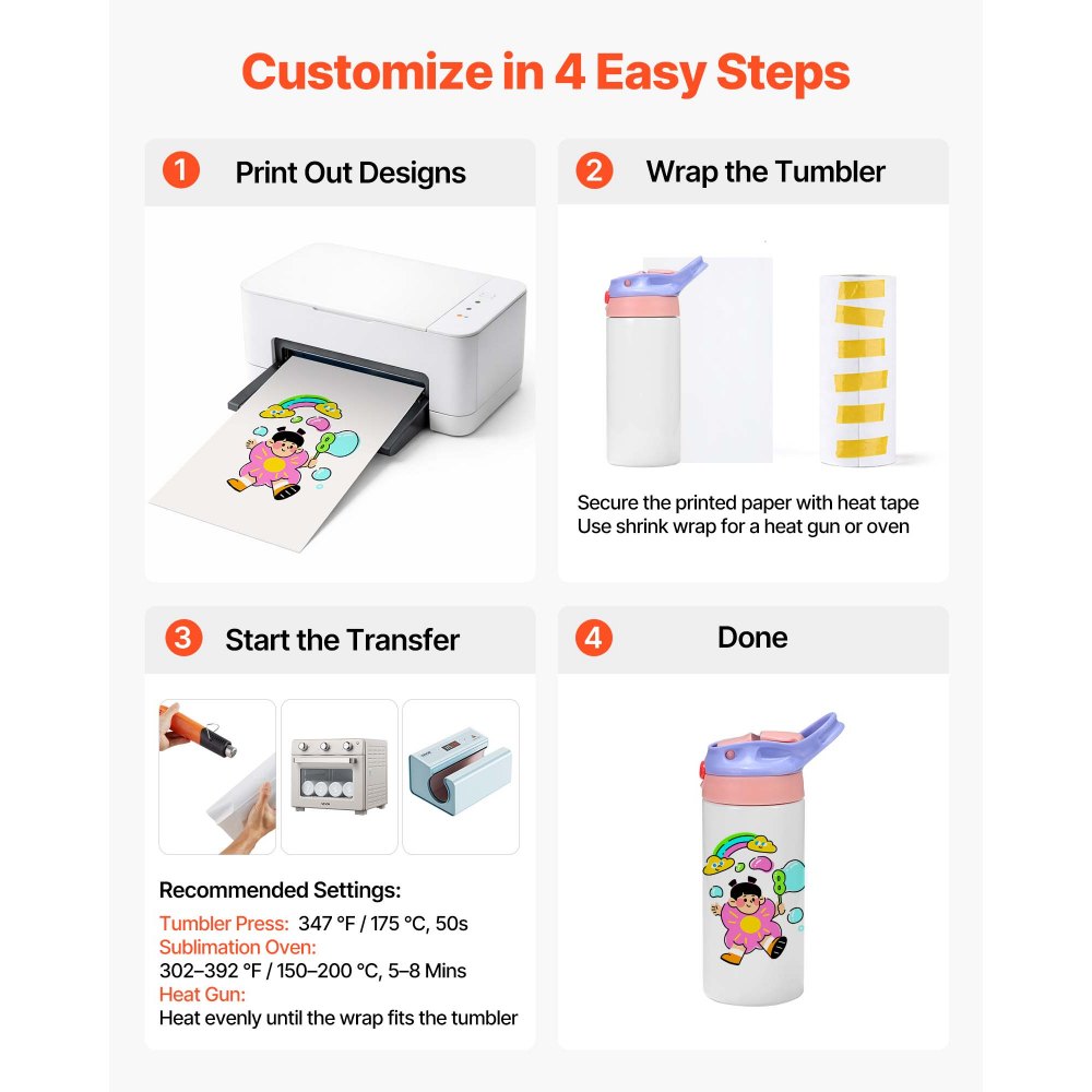 Διασκεδαστική διαδικασία επίστρωσης DIY: Τα ποτήρια εξάχνωσης διαθέτουν μια διαδικασία αυτόματου ψεκασμού που δημιουργεί μια ομοιόμορφη, σταθερή επίστρωση για διαφανείς μεταφορές με σταθερό χρώμα. Το σετ δώδεκα τεμαχίων με έξι χρώματα καπακιού επιτρέπει στα παιδιά να φτιάχνουν τα δικά τους ποτήρια DIY και να δείχνουν το στυλ τους. Υλικά κατάλληλα για τρόφιμα: Η εσωτερική επένδυση από ανοξείδωτο ατσάλι 304 υποστηρίζει ζεστά και κρύα ροφήματα για αξιόπιστη καθημερινή χρήση. Σχεδιασμένα για επαφή με παιδικά ποτά, τα ποτήρια εξάχνωσης μας πληρούν τις απαιτήσεις CPC, προσφέροντας στους γονείς ηρεμία. Σχεδιασμός μόνωσης κενού: Η διπλού τοιχώματος δομή κενού από ανοξείδωτο ατσάλι διατηρεί τα ποτά κρύα για έως και 12 ώρες και ζεστά για έως και 8 ώρες. Τα κύπελλα εξάχνωσης διατηρούν μια άνετη θερμοκρασία για γάλα, χυμό και νερό, ώστε τα παιδιά να μπορούν να απολαμβάνουν τα ποτά τους οποιαδήποτε στιγμή. Εύκολο στη χρήση: Το άνοιγμα του καπακιού με ένα πάτημα διευκολύνει τα μικρά χεράκια. Το απαλό καλαμάκι σιλικόνης σε αυτά τα ποτήρια από ανοξείδωτο ατσάλι είναι απαλό για πιο άνετη κατανάλωση. Πλήρες σετ αξεσουάρ: Αυτό το σετ ποτηριών περιλαμβάνει σιλικονούχα χαλάκια, θερμοσυρρικνούμενη μεμβράνη, κουτιά και κορδέλες μαζί με το σετ ποτηριών, ιδανικό για καθημερινή χρήση, κοινή χρήση σε πάρτι και ειδικές περιστάσεις.