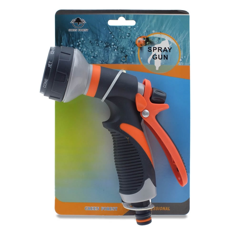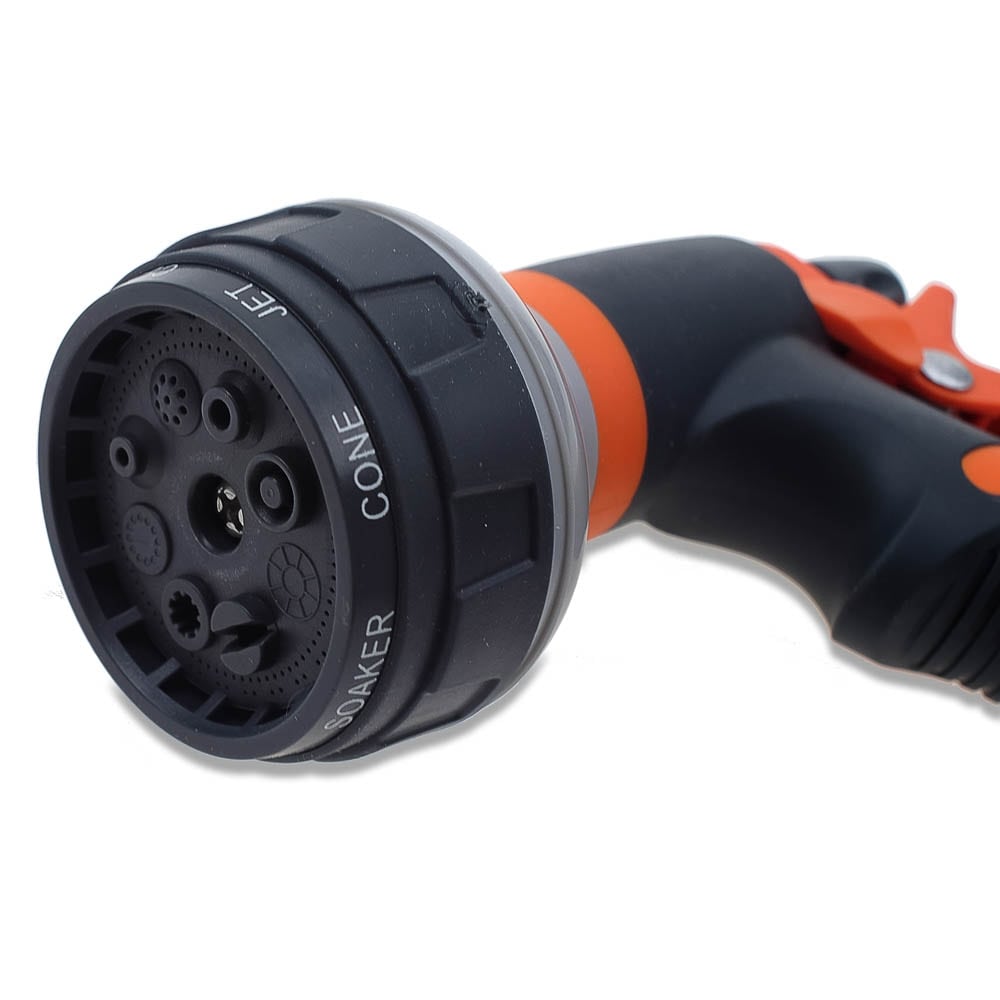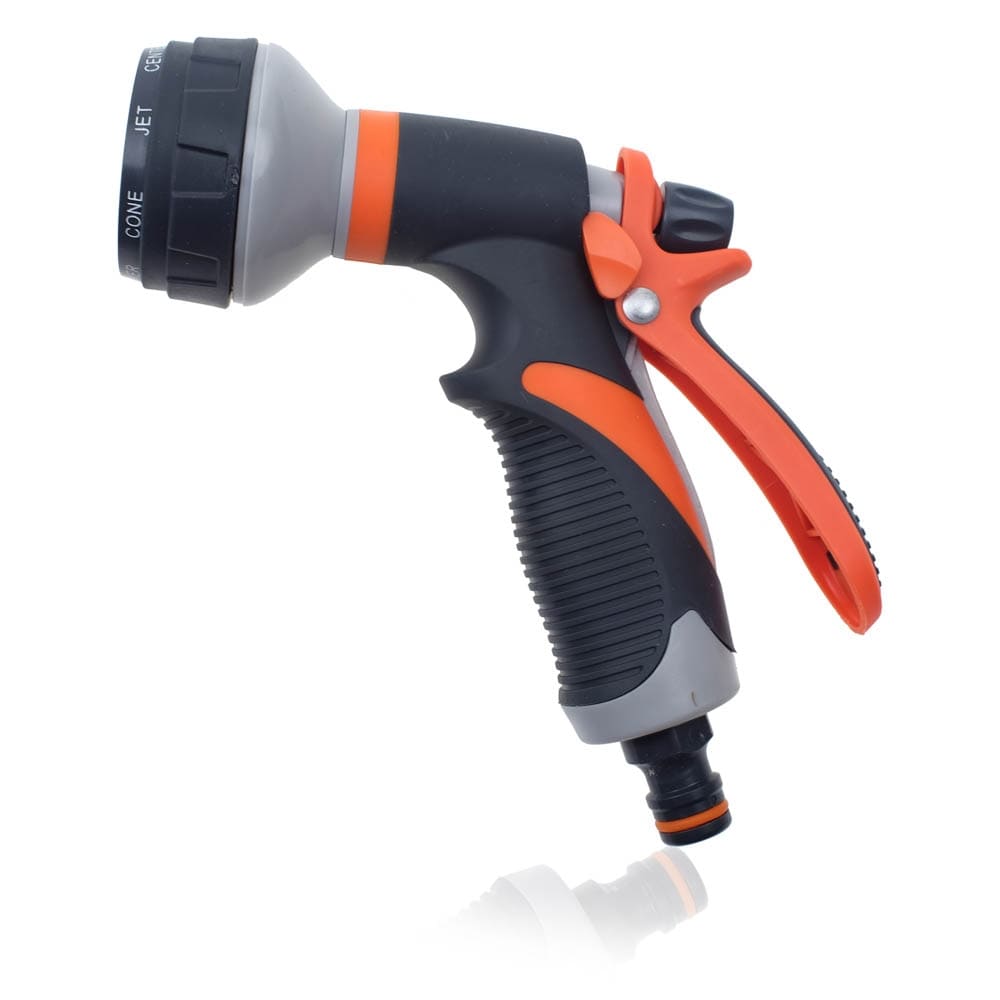 Υψηλής ποιότητας πιστόλι ψεκασμού πολλαπλών λειτουργιών με αντοχή στις καιρικές συνθήκες και στα άλατα του νερού χάρη στην εσωτερική του σιλικονούχα μεμβράνη προστασίας.