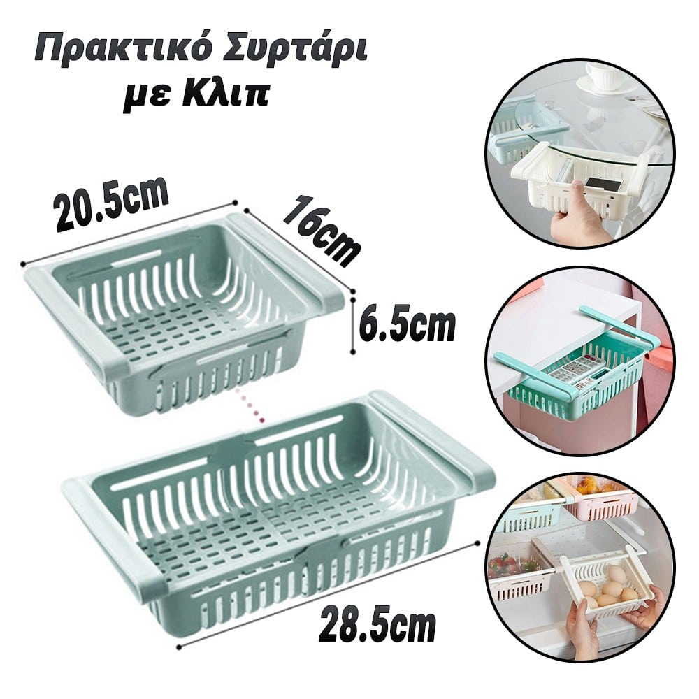 Ένα αξεσουάρ απαραίτητο για κάθε χώρο!Προσαρμόζεται εύκολα και γρήγορα στο μέγεθος που εξυπηρετεί τις δικές σας ανάγκες! Κρατάει το ψυγείο σας οργανωμένο και τακτοποιημένο, 'έτσι ώστε να βρίσκετε αυτό που ψάχνετε ανα πάσα στιγμή.Επιπλέον τα τρόφιμα "αναπνέουν" και διαρκούν περισσότερο! Κατασκευασμένο από ανθεκτικό πλαστικό, ασφαλές για τρόφιμα.Διαθέτει άγκιστρα για να μπορεί να προσαρμόζεται στα ράφια του ψυγείου και να λειτουργεί σαν συρτάρι αποθήκευσης.