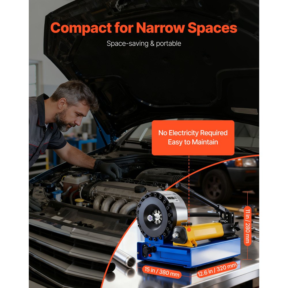 8 μήτρες πρέσας: Αυτό το εργαλείο πρέσας για σωλήνες υψηλής πίεσης διαθέτει 8 μήτρες διαφόρων μεγεθών: 10mm, 12mm, 14mm, 16mm, 19mm, 23mm, 27mm και 30mm. Εύρος πρέσας: Εσωτερική διάμετρος 0,24" έως 1,1" (6mm-28mm), μέγιστο άνοιγμα χωρίς μήτρες: 2,28 ίντσες (58mm) Αποδοτική πτύχωση: Με την υδραυλική αντλία υψηλής απόδοσης, η χειροκίνητη υδραυλική πτύχωση εύκαμπτου σωλήνα παρέχει σταθερή δύναμη πτύχωσης υψηλής πίεσης για να εξασφαλίσει μια σταθερή και αξιόπιστη σύνδεση. Ανθεκτική και στιβαρή: Η ανθεκτική στη φθορά, υψηλής αντοχής κεφαλή είναι κατασκευασμένη από σφυρήλατο χάλυβα 20Cr, παρέχοντας εξαιρετική ανθεκτικότητα και αντοχή στη θραύση. Σε συνδυασμό με τη δομή της έδρας με 8 πέταλα, εξασφαλίζεται πιο ακριβές αποτέλεσμα πτύχωσης. Ευέλικτη λειτουργία: Λειτουργώντας με χειροκίνητο υδραυλικό σύστημα, αυτό το πρεσαριστό σωλήνα υψηλής πίεσης λειτουργεί αποτελεσματικά χωρίς την ανάγκη ηλεκτρικής ενέργειας. Περιλαμβάνει επίσης ενσωματωμένο περιστροφικό μικρόμετρο για ακριβείς ρυθμίσεις και ένα κουτί καλουπιού για να διατηρεί τα εργαλεία οργανωμένα. Ευρεία εφαρμογή: Κατάλληλο για διάφορους μηχανικούς σωλήνες λαδιού υψηλής και χαμηλής πίεσης, σωλήνες αερίου, σωλήνες νερού, συνδέσμους καλωδίων, σωλήνες κλιματισμού αυτοκινήτων, σωλήνες υδραυλικού τιμονιού αυτοκινήτων, σωλήνες λαδιού τροφοδοσίας βενζίνης κ.λπ. Εφαρμόζεται ευρέως σε οχήματα, μηχανήματα και υδραυλικά μηχανήματα.