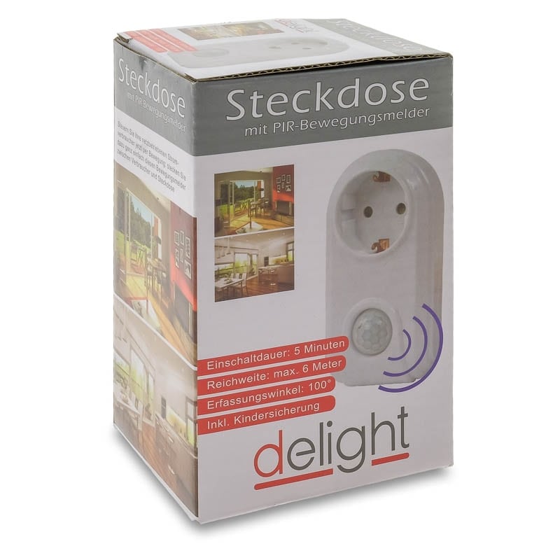 Προσαρμογέας με αισθητήρα κίνησης, αισθητήρα φωτός και ασφάλεια για τα παιδιά. Αυτή η πρίζα με ανιχνευτή κίνησης ενεργοποιεί αυτόματα, συνδεδεμένους λαμπτήρες ή άλλες συσκευές. Ενεργοποιείται μόνο στο σκοτάδι με το που αντιληφθεί κίνηση σώματος ή θερμότητας και δίνει ρεύμα για 5 λεπτά.Ιδανικό για αίθουσες, γκαράζ, παιδικό δωμάτιο, σκάλες υπογείου, γραφείο, κατάστημα, ξενοδοχείο και πολλά άλλα Χαρακτηριστικά: Υλικό: ABS Ανίχνευση παθητικής υπέρυθρης ακτινοβολίας PIR Αυτόματη απενεργοποίηση μετά από περίπου 5 λεπτά Ενσωματωμένη ασφάλεια για παιδιά Γωνία ανίχνευσης: 100° Εύρος ανίχνευσης: 6m Κατηγορία προστασίας: IP20 Ονομαστική τάση: 230 V ~ / 50 Hz max Συνδεδεμένο φορτίο: 3500W / 16A max Διαστάσεις: 118 x 63 x 76 mm Εγγύηση Ενός Έτους