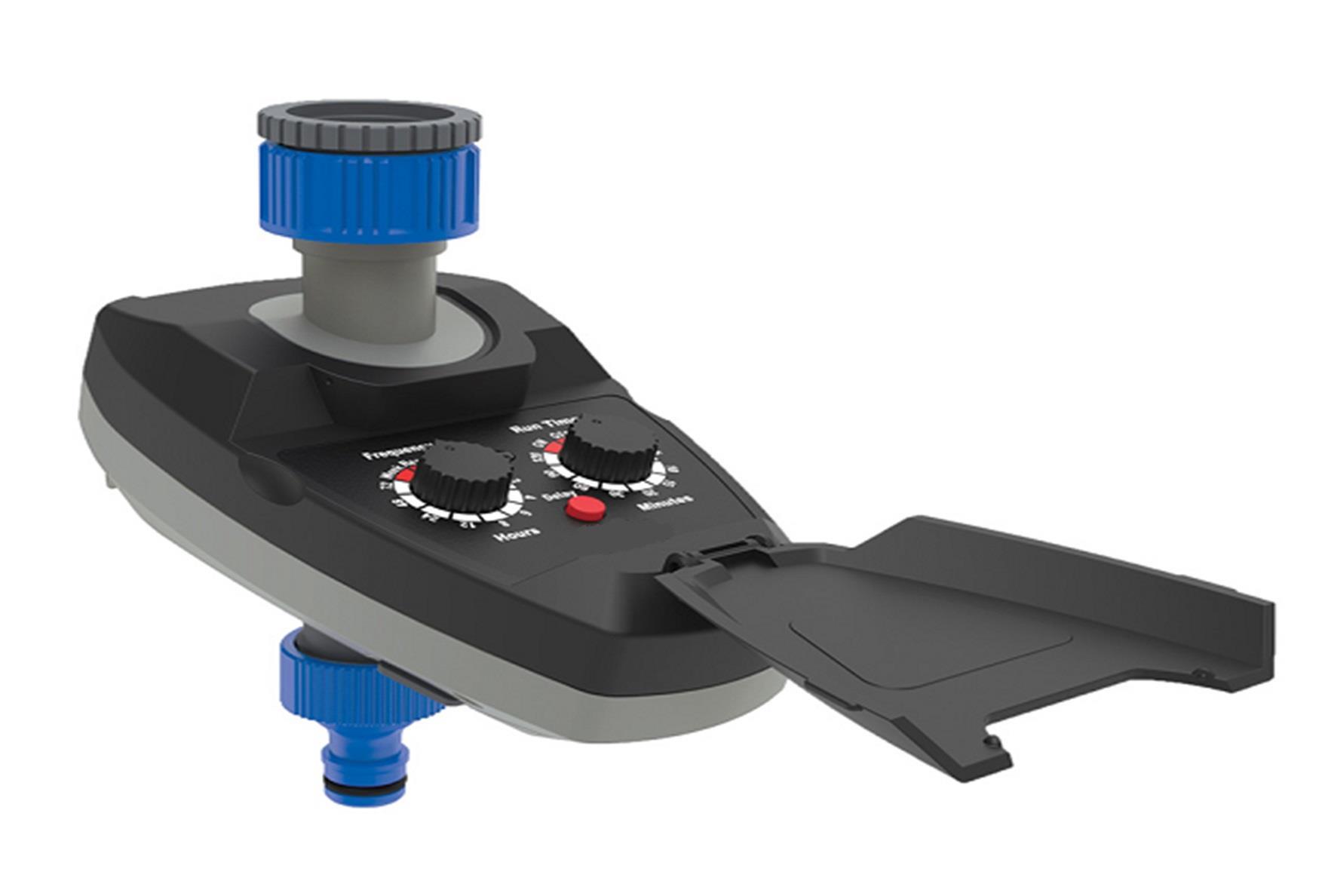 Προγραμματιστής με ενσωματωμένη ηλεκτροβάνα, ανεξάρτητη ρύθμιση διάρκειας & συχνότητας άρδευσης. Συχνότητα άρδευσης 1, 2, 3, 4, 6, 8, 12, 24, 48, 72 Ώρες & εβδομάδα. Διάρκεια άρδευσης 1, 3, 5, 10, 15, 20, 30, 60, 90, 120 Λεπτά Λειτουργία καθυστέρησης έναρ