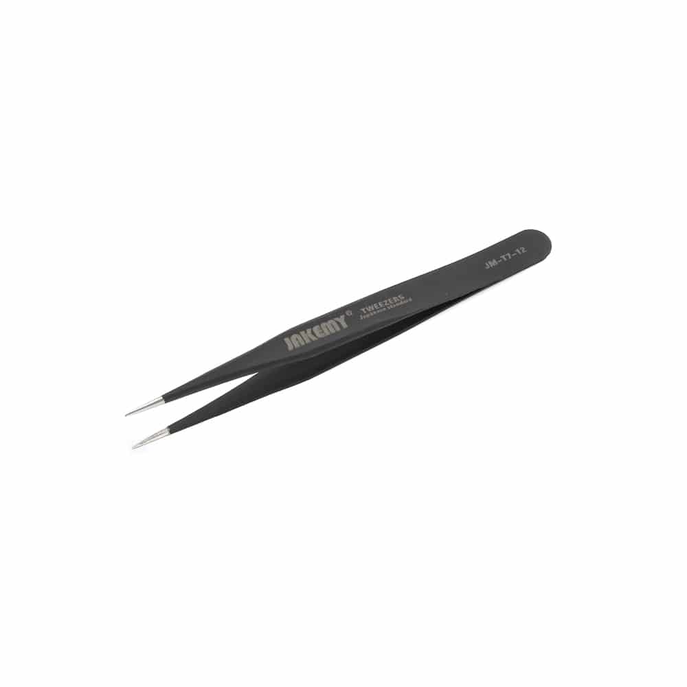 Ίσια προσέλα ενισχυμένη από την JAKEMY. Μια μεταλλική ενισχυμένη προσέλα, μαύρη μήκους 123mm. Κατασκευασμένη προσεγμένα από αντιστατικά και αντιμαγνητικά υλικά που διασφαλίζουν την ασφαλή επαφή με ηλεκτρονικά κυκλώματα. Ένα χρήσιμο και απαραίτητο εργαλείο για όλα τα εργαστήρια ηλεκτρονικών και τεχνικών Η/Υ. DOA 14 ημερών