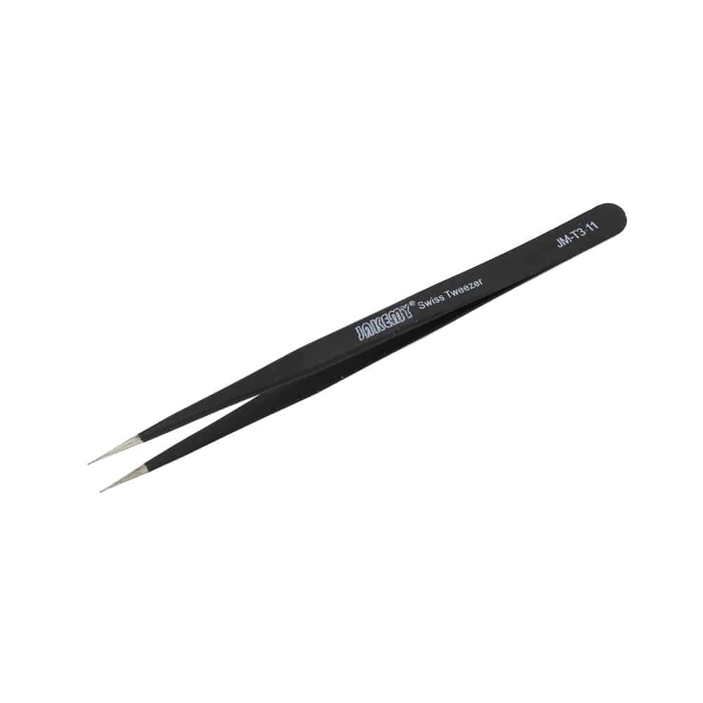 Επιμήκης ίσια προσέλα από την JAKEMY. Μεταλλική ίσια επιμήκης προσέλα μαύρη, μήκους 140mm. Κατασκευασμένη προσεγμένα από αντιστατικά και αντιμαγνητικά υλικά που διασφαλίζουν την ασφαλή επαφή με ηλεκτρονικά κυκλώματα. Ένα χρήσιμο και απαραίτητο εργαλείο για όλα τα εργαστήρια ηλεκτρονικών και τεχνικών Η/Υ. DOA 14 ημερών