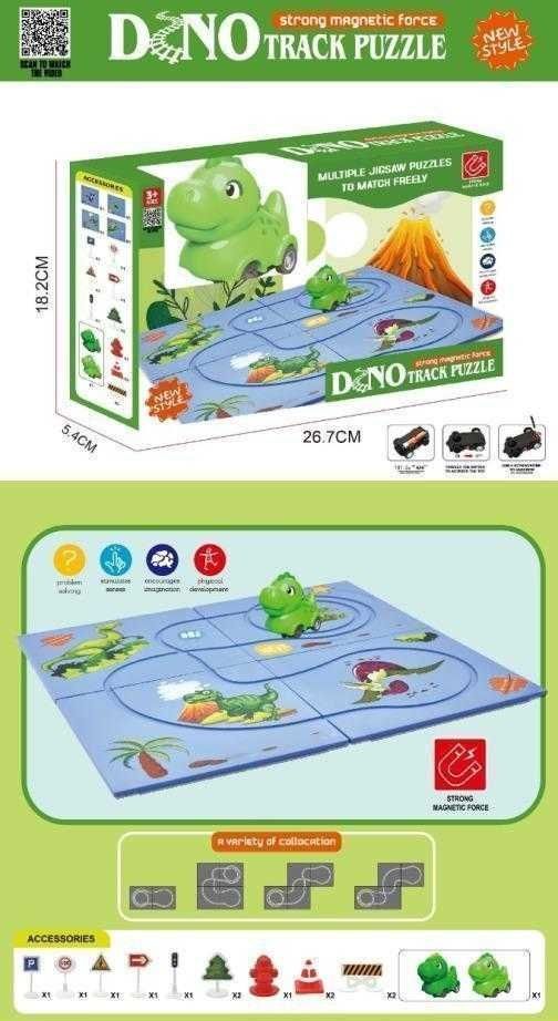 Προσχολικό επιτραπέζιο παιχνίδι Track Puzzle - Δεινόσαυρος, με δυνατότητα δημιουργίας πολλών διαφορετικών διαδρομών και πολλά αξεσουάρ, σε υπέροχο πολύχρωμο σχεδιασμό. Εξασκεί την επιδεξιότητα και την λεπτή κινητικότητα του παιδιού, διασκεδάζοντας.