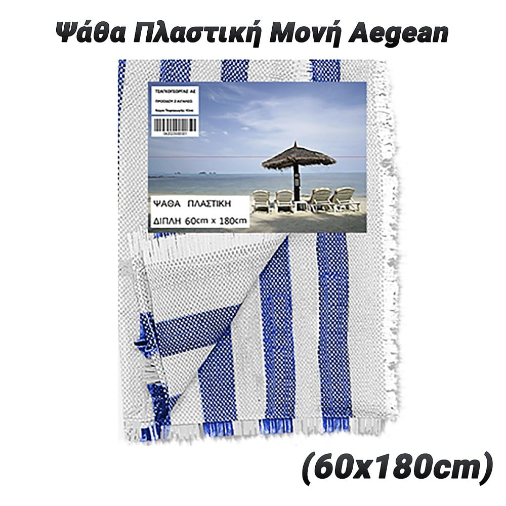 Απολαύστε τις ηλιόλουστες μέρες στην παραλία με την υπέροχη Ψάθα Aegean. Αυτή η ψάθα συνδυάζει την ανθεκτικότητα του πλαστικού με την φυσική αίσθηση της ψάθας, προσφέροντας άνεση και προστασία στην αμμουδιά. Κύρια Χαρακτηριστικά: Υψηλής Ποιότητας Υλικά: Κατασκευασμένη από ποιοτικά υλικά, η ψάθα είναι ανθεκτική στη χρήση και διατηρεί την αρχική της μορφή με την πάροδο του χρόνου. Διπλή Σχεδίαση: Με διαστάσεις 60x180cm η διπλή ψάθα προσφέρει επιπλέον προστασία από την υγρασία και την άμμο, ενώ επιτρέπει την εξαερισμό του χώρου κάτω από την ψάθα. Ελαφριά και Εύκολη στη Μεταφορά: Η ψάθα είναι ελαφριά και εύκολη στη μεταφορά, καθιστώντας την ιδανική για εκδρομές στην παραλία, το camping ή το πικ νικ. Με την Ψάθα Aegean, απολαύστε τις ημέρες σας στην παραλία με άνεση και στυλ, αποκτώντας παράλληλα μια προστατευτική και ανθεκτική επιφάνεια για χαλάρωση και ψυχαγωγία.