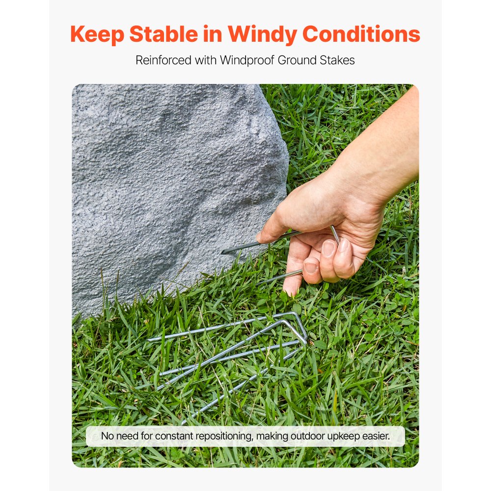 Ρεαλιστική εμφάνιση: Η τεχνητή ψεύτικη πέτρινη κάλυψή μας διαθέτει υφές που μοιάζουν με φυσική πέτρα σε γκρι χρώμα. Το φυσικό χρώμα της πέτρας και η ρεαλιστική της εμφάνιση μπορούν να αντικαταστήσουν την πραγματική πέτρα στον κήπο ή το τοπίο, συνδυάζοντάς την άψογα με τον κήπο, την πισίνα και το γκαζόν. Κάλυψη Εγκαταστάσεων Premium: Κατασκευασμένη από 100% ανακυκλώσιμο HDPE, η ψεύτικη πέτρινη κάλυψή μας είναι ανθεκτική στην πίεση και στις ρωγμές. Καλύπτει πηγάδια, σωλήνες και βαλβίδες καταιονισμού για να αποτρέψει την πρόκληση ζημιών. Είναι ανθεκτική στον ήλιο και τη βροχή, παρατείνοντας τη διάρκεια ζωής των εγκαταστάσεων. Μεσαίου μεγέθους για ευρεία χρήση: Με διαστάσεις περίπου 13,98 x 15,35 x 23,43 ίντσες, η βραχώδης κάλυψη τοπίου μας κρύβει κοινές εγκαταστάσεις όπως αντλίες, ηλεκτρικά κουτιά, καλύμματα φρεατίων και βαλβίδες καταιονισμού. Παρακαλούμε μετρήστε την εγκατάστασή σας πριν από την εγκατάσταση. Ανθεκτικός στον άνεμο και σταθερός σχεδιασμός: Τα τεχνητά καλύμματα από βράχους μας παρέχουν τρύπες στο κάτω μέρος και περιλαμβάνουν μεταλλικούς πασσάλους για εύκολη στερέωση στο γρασίδι ή το χώμα. Αυτός ο σχεδιασμός αποφεύγει την μετατόπιση που προκαλείται από τον άνεμο και η εγκατάστασή του δεν απαιτεί εργαλεία. Κατάλληλο για αυλές και βεράντες. Ελαφρύ για εύκολη μετακίνηση: Το κάλυμμα βράχου τοπίου μας ζυγίζει μόνο 4,15 λίβρες με μια στιβαρή και ελαφριά κοίλη δομή. Είναι εύκολο στη μεταφορά και την τοποθέτηση από ένα άτομο. Ο σχεδιασμός που μοιάζει με βράχο μπορεί να περιστραφεί για να ρυθμίσει τη γωνία, προσαρμόζοντας σε διαφορετικά σκηνικά.