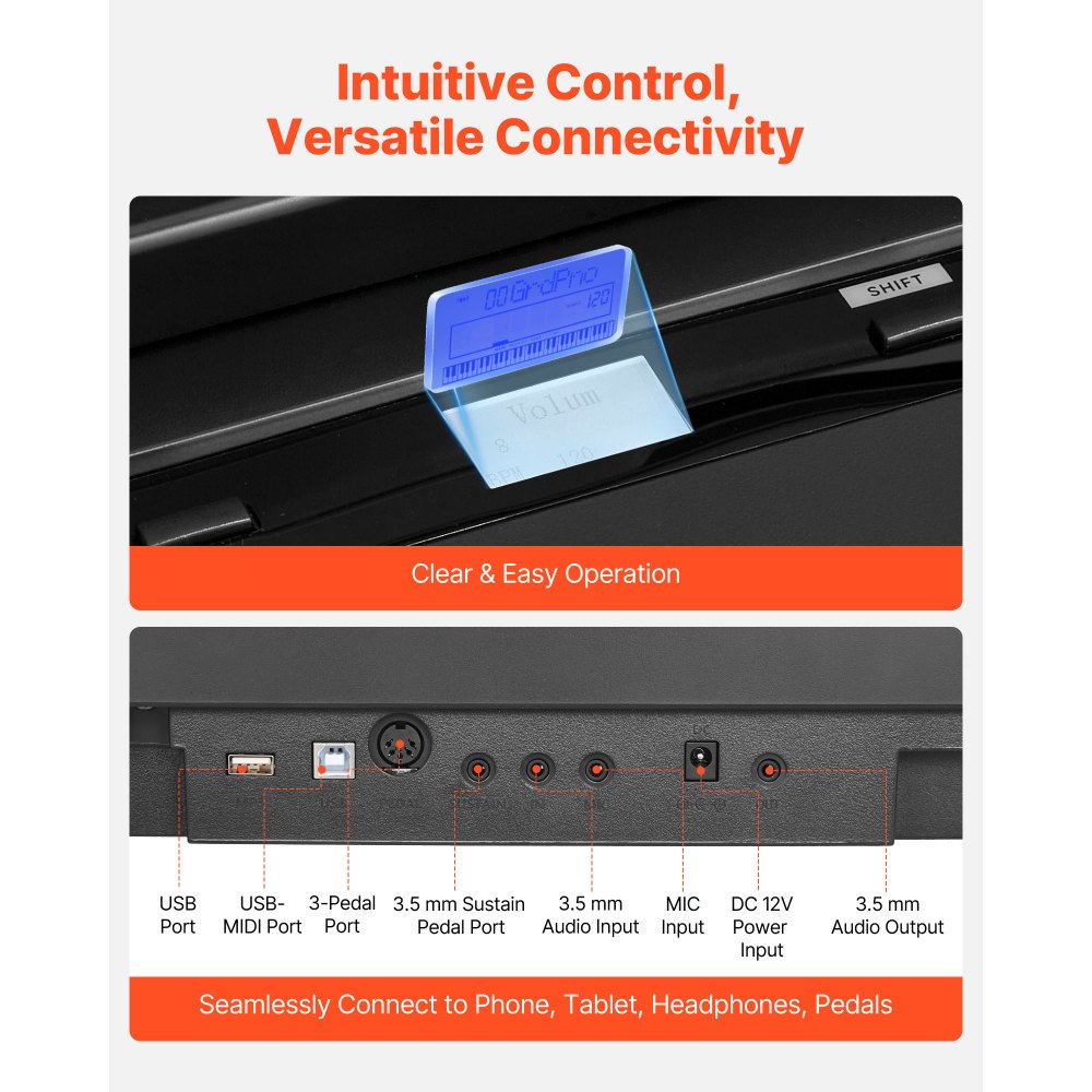 Ρεαλιστική αφή και ήχος: Διαθέτοντας ένα πλήρες πληκτρολόγιο 88 πλήκτρων με πλήρη βαρύτητα, δράση σφυριού και ευαισθησία αφής 3 επιπέδων, αυτό το πιάνο με βαρύτητα προσομοιώνει αυθεντικά την αίσθηση ενός ακουστικού πιάνου. Ιδανικό για αρχάριους και για καθημερινό παίξιμο. Πλούσιος ήχος υψηλής πιστότητας: Εξοπλισμένο με τη μηχανή ήχου French DREAM και το σύστημα διπλών ηχείων, αυτό το ψηφιακό πιάνο με 88 πλήκτρα προσφέρει καθαρό, γεμάτο ήχο που αναπαράγει με ακρίβεια τους λεπτούς τόνους ενός πιάνου με ουρά. Έξυπνη εμπειρία εκμάθησης: Αυτό το ηλεκτρικό πιάνο με 88 πλήκτρα υποστηρίζει ασύρματη συνδεσιμότητα και διάφορες εφαρμογές και συσκευές. Προσφέρει 260 ρυθμούς, 280 τόνους και 110 τραγούδια demo, καθιστώντας την εκμάθηση εύκολη και αποτελεσματική. Σχεδιασμός διπλού πληκτρολογίου: Η λειτουργία διπλού πληκτρολογίου επιτρέπει στους εκπαιδευτικούς να καθοδηγούν οπτικά και να επιδεικνύουν τεχνικές. Αυτό το πληκτρολόγιο 88 πλήρως σταθμισμένων πλήκτρων επιτρέπει στους μαθητές να μιμούνται άμεσα ρυθμούς και δεξιότητες για ταχύτερη πρόοδο. Κομψή εμφάνιση: Αυτό το πληκτρολόγιο πιάνου με βάρη διαθέτει μοντέρνα, μινιμαλιστική εμφάνιση με απαλές, καθαρές γραμμές που ταιριάζουν άψογα σε κάθε διακόσμηση σπιτιού. Αναβαθμίζει το σαλόνι ή τη μουσική σας γωνιά με μια εκλεπτυσμένη καλλιτεχνική πινελιά.