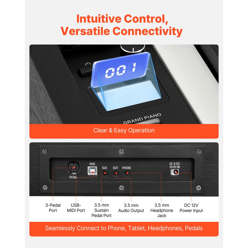 Ρεαλιστική αφή και ήχος: Διαθέτοντας ένα πλήρες πληκτρολόγιο 88 πλήκτρων με πλήρη βαρύτητα, δράση σφυριού και ευαισθησία αφής 3 επιπέδων, αυτό το πιάνο με βαρύτητα προσομοιώνει αυθεντικά την αίσθηση ενός ακουστικού πιάνου. Ιδανικό για αρχάριους και για καθημερινό παίξιμο. Πλούσιος ήχος υψηλής πιστότητας: Εξοπλισμένο με τη μηχανή ήχου French DREAM και το σύστημα διπλών ηχείων, αυτό το ψηφιακό πιάνο με 88 πλήκτρα προσφέρει καθαρό, γεμάτο ήχο που αναπαράγει με ακρίβεια τους λεπτούς τόνους ενός πιάνου με ουρά. Έξυπνη εμπειρία εκμάθησης: Αυτό το ηλεκτρικό πιάνο με 88 πλήκτρα υποστηρίζει ασύρματη συνδεσιμότητα και διάφορες εφαρμογές και συσκευές. Προσφέρει 260 ρυθμούς, 280 τόνους και 110 τραγούδια demo, καθιστώντας την εκμάθηση εύκολη και αποτελεσματική. Σχεδιασμός διπλού πληκτρολογίου: Η λειτουργία διπλού πληκτρολογίου επιτρέπει στους εκπαιδευτικούς να καθοδηγούν οπτικά και να επιδεικνύουν τεχνικές. Αυτό το πληκτρολόγιο 88 πλήρως σταθμισμένων πλήκτρων επιτρέπει στους μαθητές να μιμούνται άμεσα ρυθμούς και δεξιότητες για ταχύτερη πρόοδο. Κομψή εμφάνιση: Αυτό το πληκτρολόγιο πιάνου με βάρη διαθέτει μοντέρνα, μινιμαλιστική εμφάνιση με απαλές, καθαρές γραμμές που ταιριάζουν άψογα σε κάθε διακόσμηση σπιτιού. Αναβαθμίζει το σαλόνι ή τη μουσική σας γωνιά με μια εκλεπτυσμένη καλλιτεχνική πινελιά.