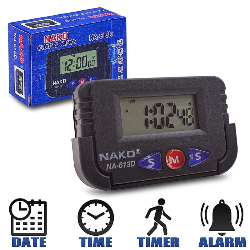 Μικρό, συμπαγές και φορητό ψηφιακό ρολόι. Διαθέτει χρονόμετρο, ξυπνητήρι, ημερολόγιο, εμφάνιση ώρας σε am / pm. Έρχεται σε βάση κλίσης 90 μοιρών με διπλής όψης κόλλα για στήριξη σε οποιοδήποτε σημείο. Επίσης η μπαταρία περιλαμβάνεται στο πακέτο. Εύκολο στην χρήση και στην μεταφορά. Λειτουργίες - Ρυθμίσεις Σε κανονική λειτουργία, εμφανίζετε ένδειξη ώρας και ημέρας. Πιέστε "D" για εμφάνιση ημερομηνίας. Πιέστε "S" για να εμφανιστεί η ώρα συναγερμού. Ρυθμίστε το χρόνο συναγερμού πιέζοντας δύο φορές "M" για να εισέλθετε στη λειτουργία συναγερμού. Πιέστε το πλήκτρο "S" για να ρυθμίσετε την ώρα και το λεπτό, πιέστε "D" για επιβεβαίωση και τέλος πιέστε "M" για να επιστρέψετε. Ρυθμίστε την ώρα πιέζοντας το πλήκτρο "M" τρεις φορές για να εισέλθετε στη λειτουργία ρύθμισης ώρα. Πιέστε "S" διαδοχικά για να επιλέξετε λεπτά, ώρα, ημέρα, εβδομάδα και μήνα και ρυθμίσετε με το πάτημα "D". Τέλος, πιέστε "M" για να επιστρέψετε. Πιέστε "M" για μία φορά για αθλητική λειτουργία, η αρχική κατάσταση εμφανίζεται ως 0:00:00. Πιέστε ξανά "D" για να σταματήσετε και πιέστε "S" για να επιστρέψετε στην αρχική λειτουργία 0:00:00. Ρυθμίστε ξυπνητήρι ON/OFF σε κανονική κατάσταση. Πιέζοντας "S" και "D", μπορείτε να ενεργοποιήσετε ή να απενεργοποιήσετε το συναγερμό. Όταν λειτουργεί το ξυπνητήρι, ένα σύμβολο "καμπανάκι" θα εμφανιστεί. Χαρακτηριστικά: Υλικό: PVC Πλαστικό Οθόνη: 1.25 ιντσών Seven Seagment display 3 κουμπιά λειτουργιών Διαστάσεις: 7.4 x 4.6 x 2.8 cm Βάρος: 99.8 g Εγγύηση Ενός Έτους