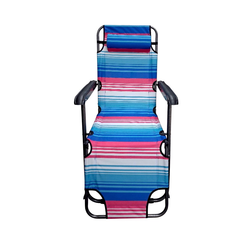 Πτυσσόμενη καρέκλα παραλίας, με πλάτη και στήριγμα ποδιών που επεκτείνονται και μετατρέπεται εύκολα σε ανάκλιντρο.