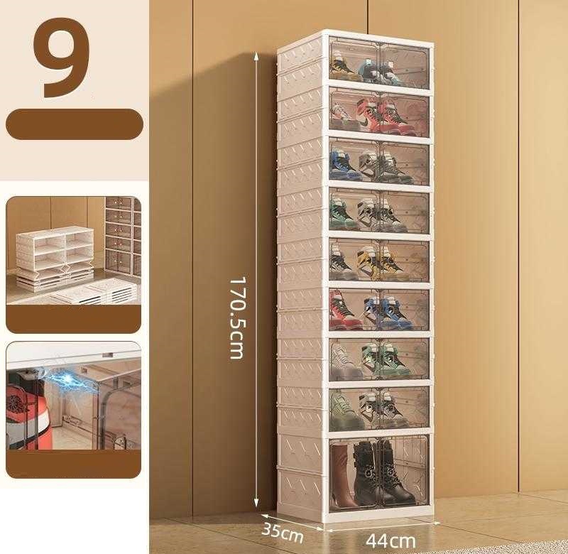 Πτυσσόμενη παπουτσοθήκη πλαστική με 18 κλειστές θέσεις παπουτσιών με διαφανές πορτάκι με μαγνήτη και εύκολη συναρμολόγηση.