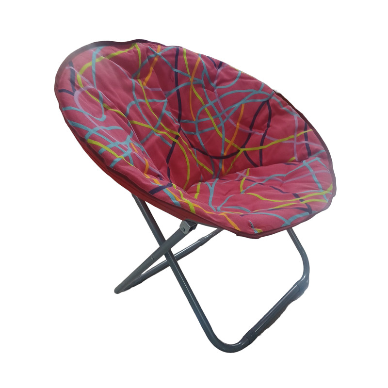 Πτυσσόμενη στρογγυλή πολυθρόνα κήπου με μαξιλάρι με αδιάβροχο ύφασμα που καθαρίζεται εύκολα, ενισχυμένο με μαλακή γέμιση και ιδιαίτερα σχέδια.