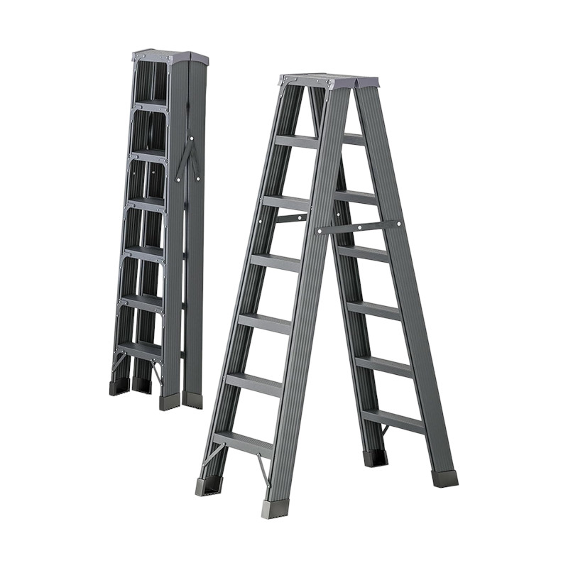Πτυσσόμενη σκάλα 7 επιπέδων, με στιβαρή κατασκευή αλουμινίου, και εργονομική σχεδίαση για εύκολη χρήση και αποθήκευση.
