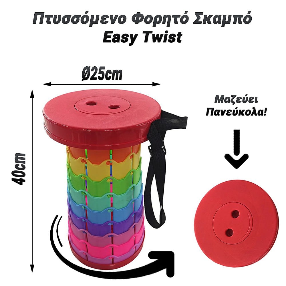 Ανακαλύψτε την απόλυτη ευκολία και άνεση με το Πτυσσόμενο Φορητό Σκαμπό (Ø25cm x 40cm). Ιδανικό για κάθε δραστηριότητα εντός και εκτός σπιτιού, αυτό το πρακτικό σκαμπό είναι η τέλεια λύση για τις ανάγκες σας. Χαρακτηριστικά: Διαστάσεις: Διάμετρος 25cm και ύψος 40cm, προσφέροντας επαρκή στήριξη και άνεση. Ελαφρύ και Ανθεκτικό: Κατασκευασμένο από υψηλής ποιότητας πλαστικό υλικό, το σκαμπό είναι εξαιρετικά ελαφρύ, ενώ παραμένει ανθεκτικό στη χρήση. Εύκολο στην Αποθήκευση: Το πτυσσόμενο σχέδιο του επιτρέπει την εύκολη αποθήκευση και μεταφορά σε συνδυασμό με το λουράκι μεταφοράς, καθιστώντας το ιδανικό για ταξίδια, κάμπινγκ, πικ-νικ, εκκλησία, συναυλίες και άλλες εξωτερικές δραστηριότητες. Πολυχρηστικότητα: Κατάλληλο για χρήση στο σπίτι, στον κήπο, στο γραφείο, ή ακόμα και στην παραλία, αυτό το σκαμπό προσφέρει πολλαπλές εφαρμογές για κάθε σας ανάγκη. Εργονομικός Σχεδιασμός: Παρέχει άνετη και σταθερή υποστήριξη για όλες τις ηλικίες, κάνοντάς το ιδανικό για κάθε μέλος της οικογένειας. Με το Πτυσσόμενο Φορητό Σκαμπό, απολαμβάνετε την τέλεια συνδυασμό φορητότητας και άνεσης, σε ένα κομψό και πρακτικό πακέτο. Προσθέστε το στην καθημερινότητά σας και βρείτε την άνεση όπου κι αν βρίσκεστε!